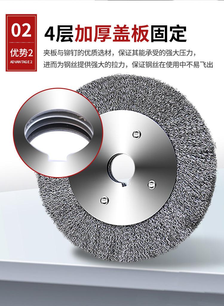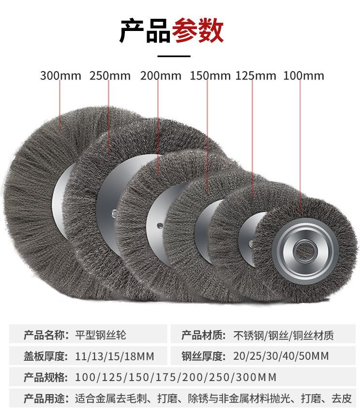 Rueda de alambre de acero, amoladora angular plana, muela de amolar, cepillo de alambre paralelo de acero inoxidable, amoladora eléctrica, desoxidante, pulido