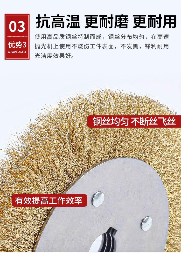 100 diameter 10-hole flat steel wire wheel without keyway yellow wire