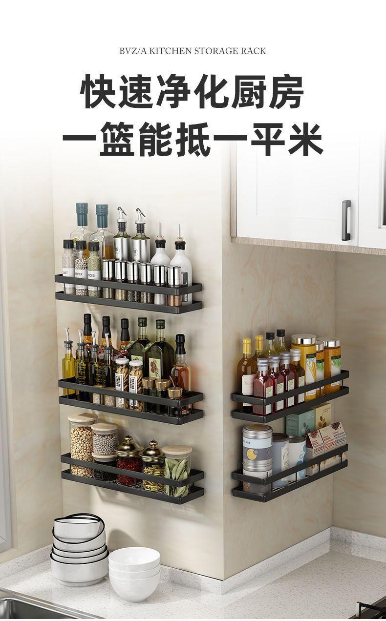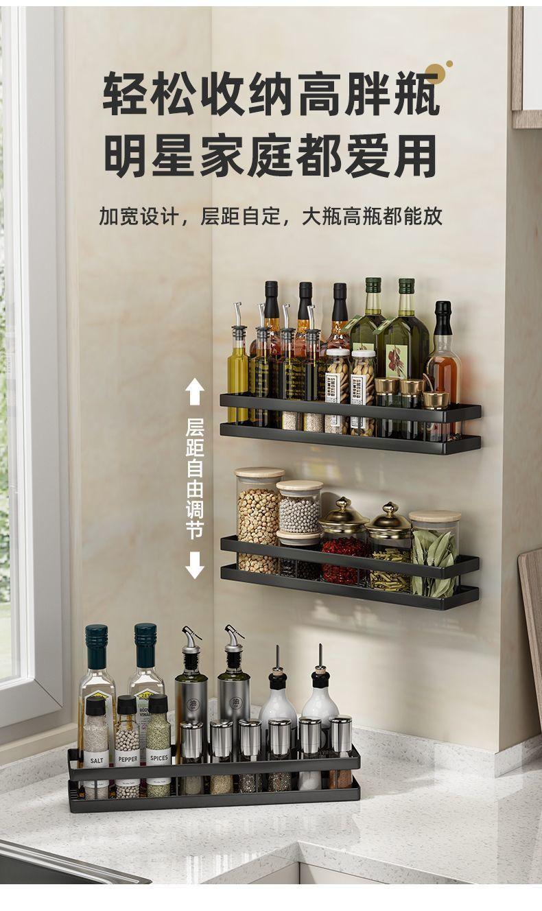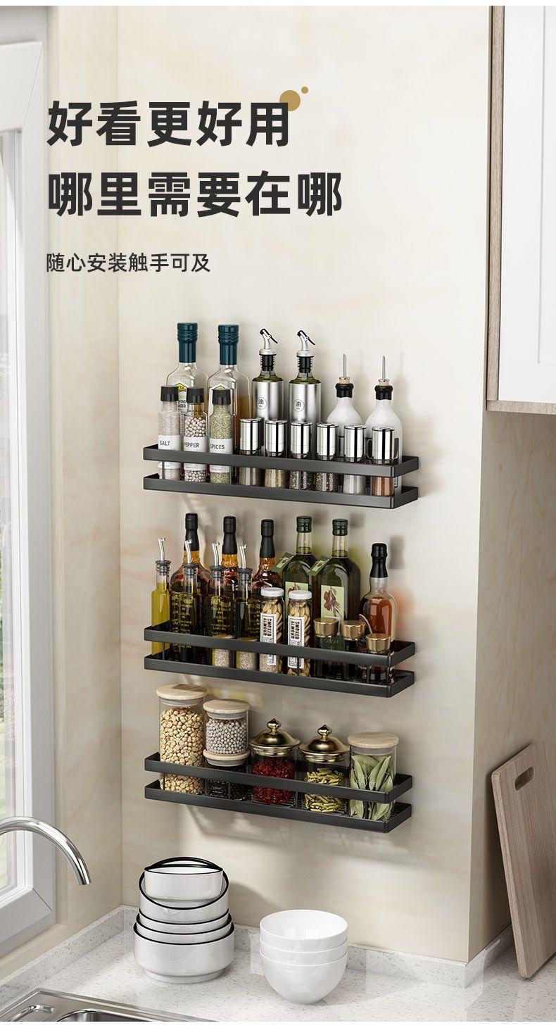 Estante de almacenamiento de cocina, estante para condimentos, sin perforar, montado en la pared, para el hogar, tarro de condimentos, estante de almacenamiento multifunción de pared