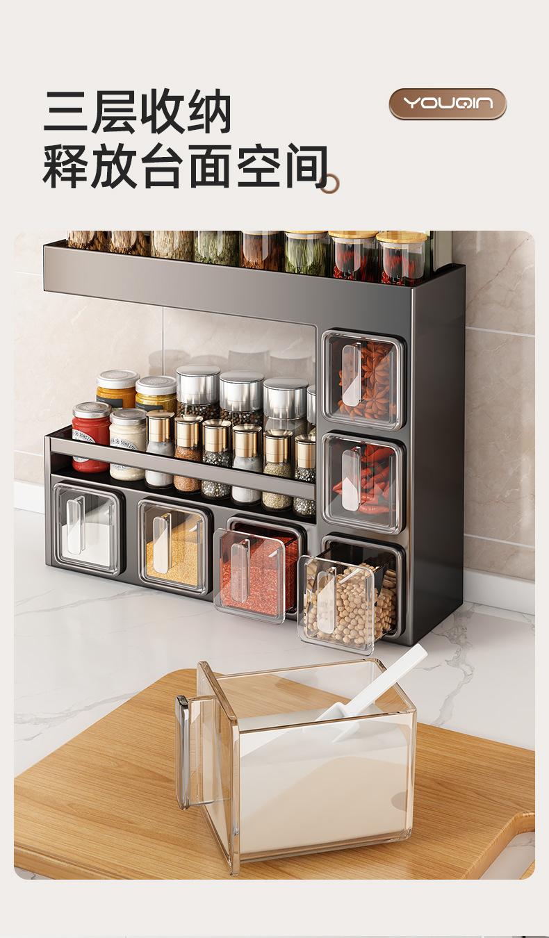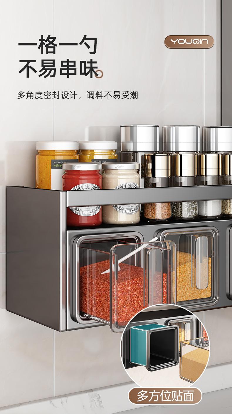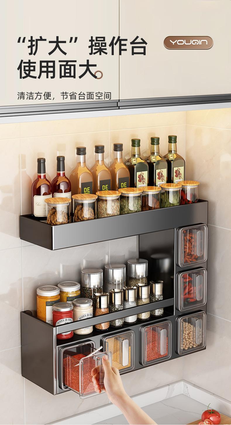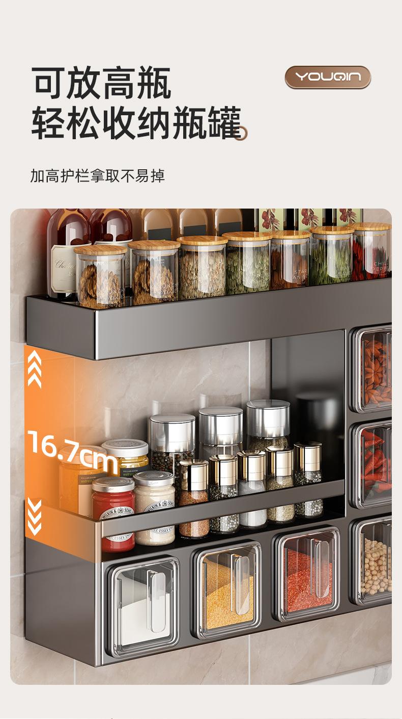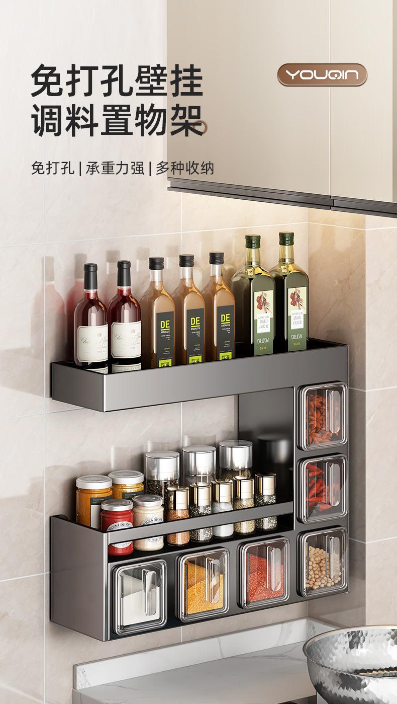 Estante de almacenamiento de condimentos de cocina, sin perforaciones, para colgar en la pared, multifuncional, para el hogar, caja de condimentos de múltiples capas, apto para tarros, estante de almacenamiento
