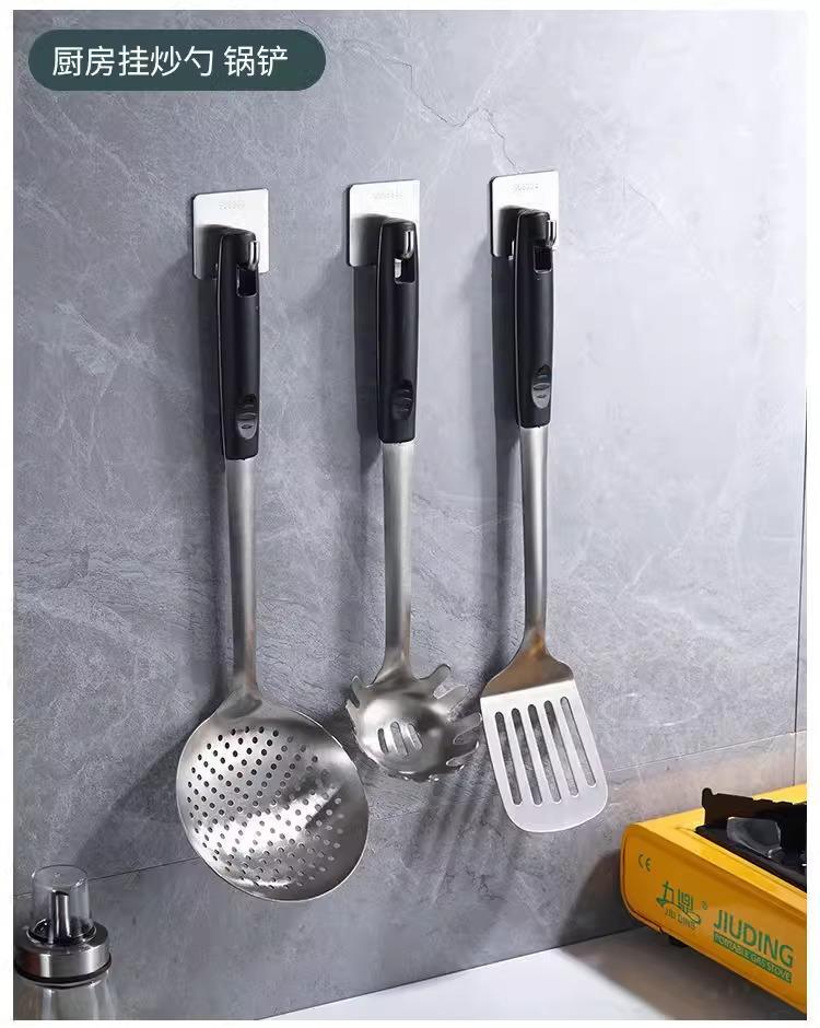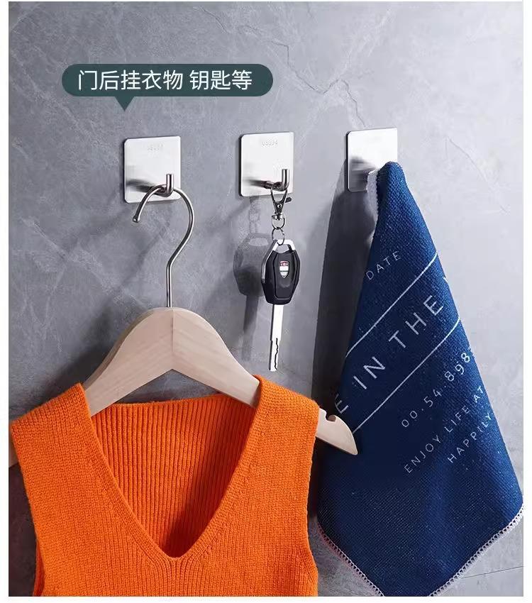 Gancho de acero inoxidable sin perforaciones, resistente, adhesivo, para puerta, para ropa, para sala de estar, cocina, dormitorio, pared.