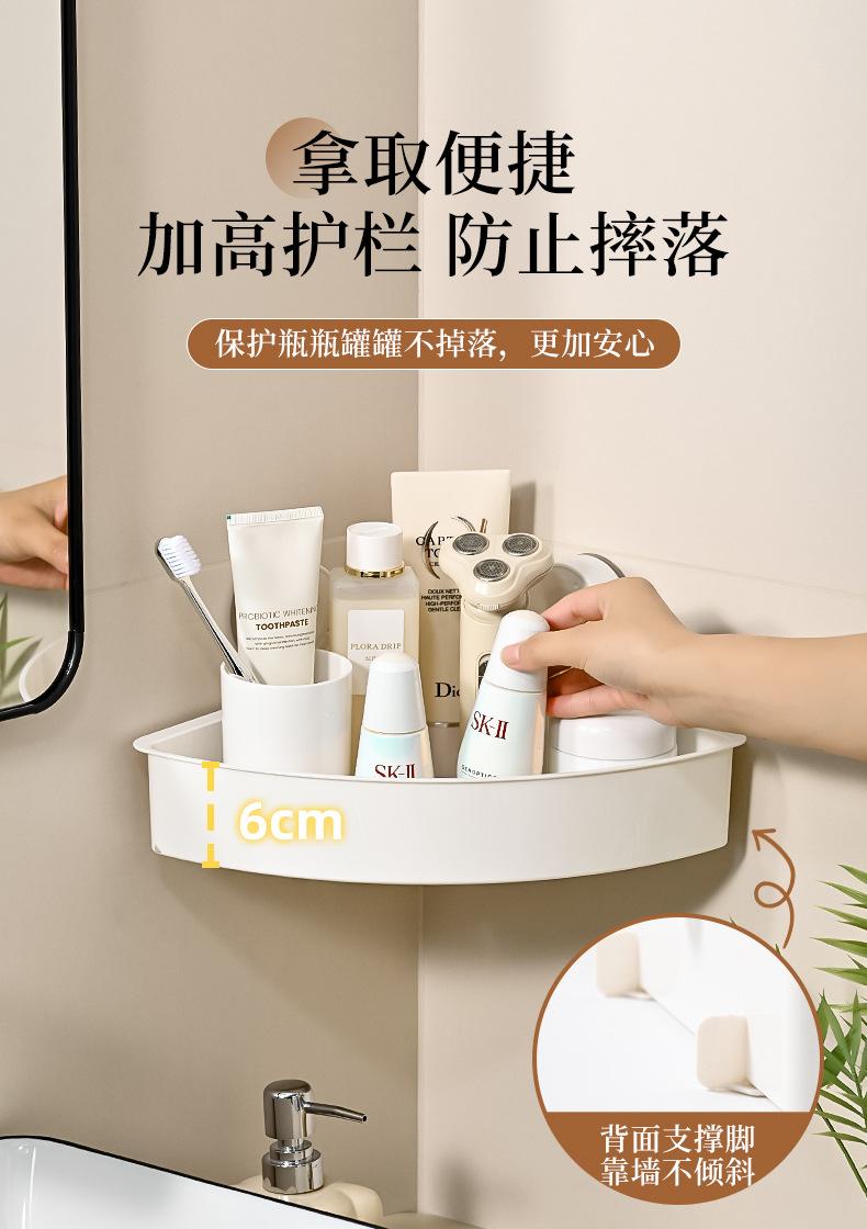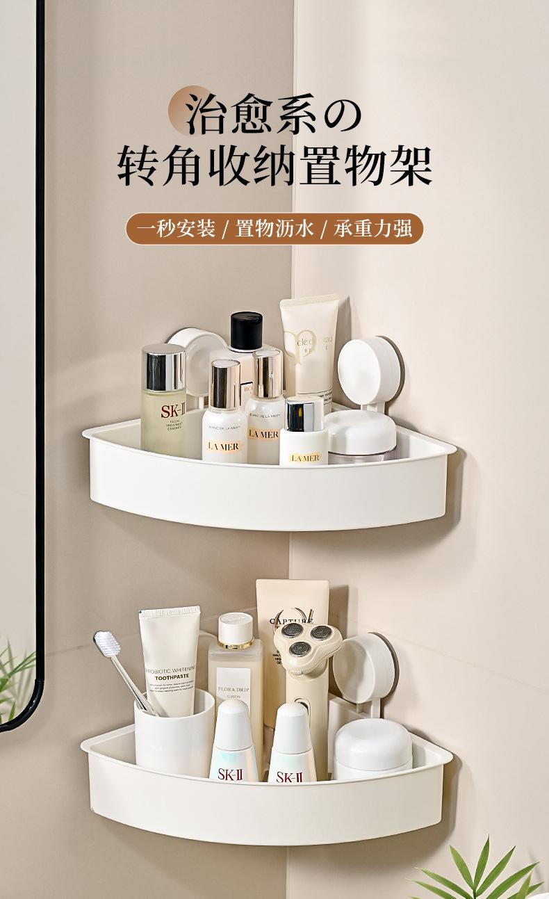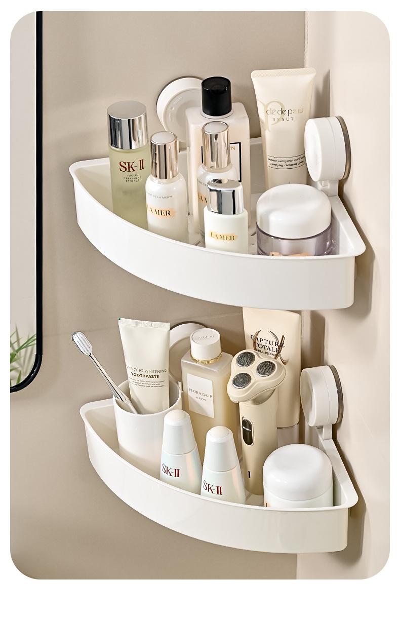 Estante de almacenamiento triangular con ventosa para inodoro, sin perforaciones, para baño, cocina, esquina, almacenamiento de artículos de tocador