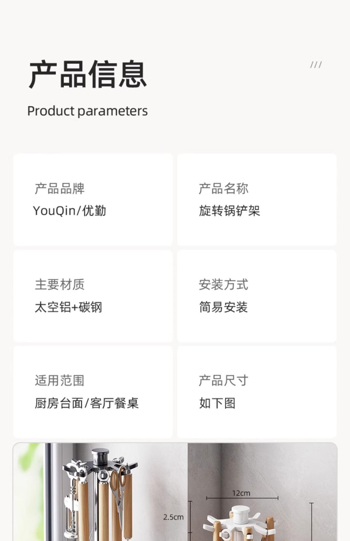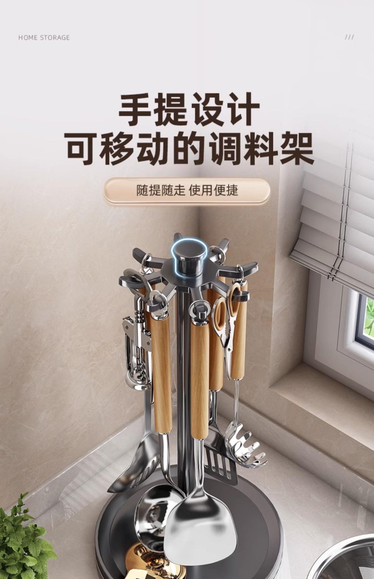 Kitchen space aluminum rotating spatula rack countertop model