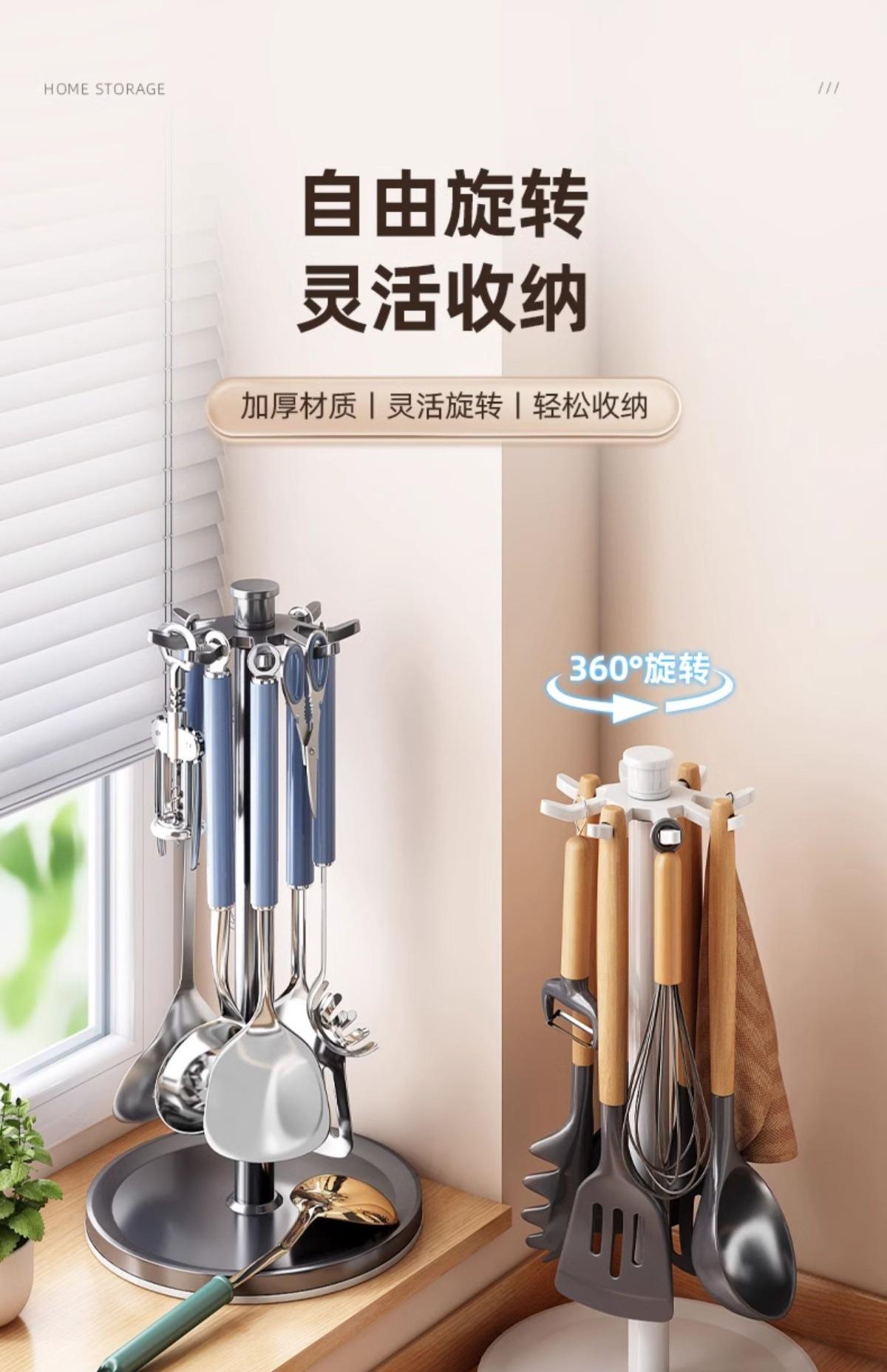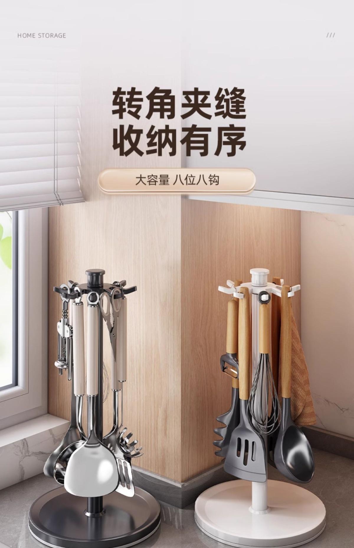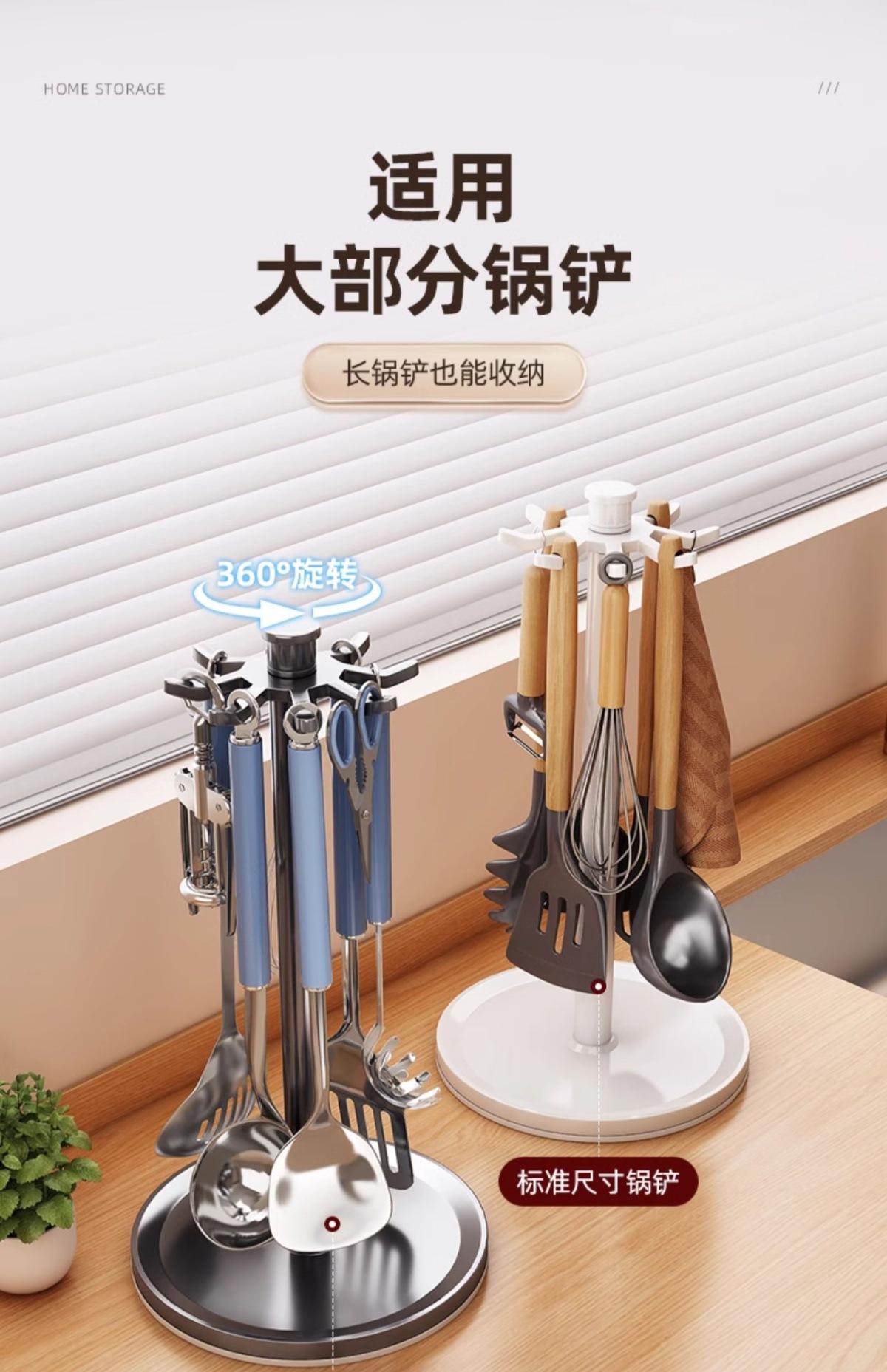 Estante giratorio para ollas y palas, gancho para encimera de cocina, estante de almacenamiento, cuchara para el hogar, cuchara para sopa, utensilios de cocina, suministros de almacenamiento