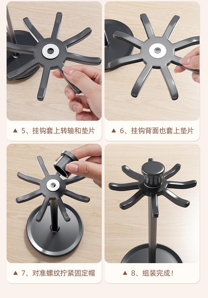 Gun gray/space aluminum rotating 8-hook spatula holder [large capacity with water tray]