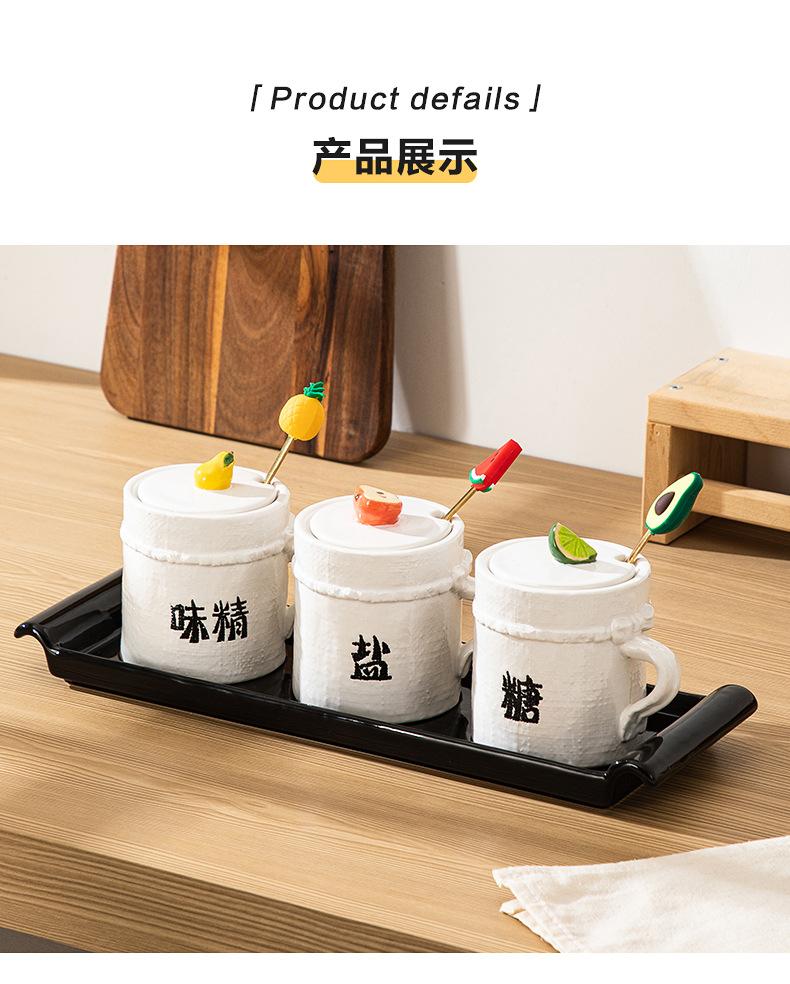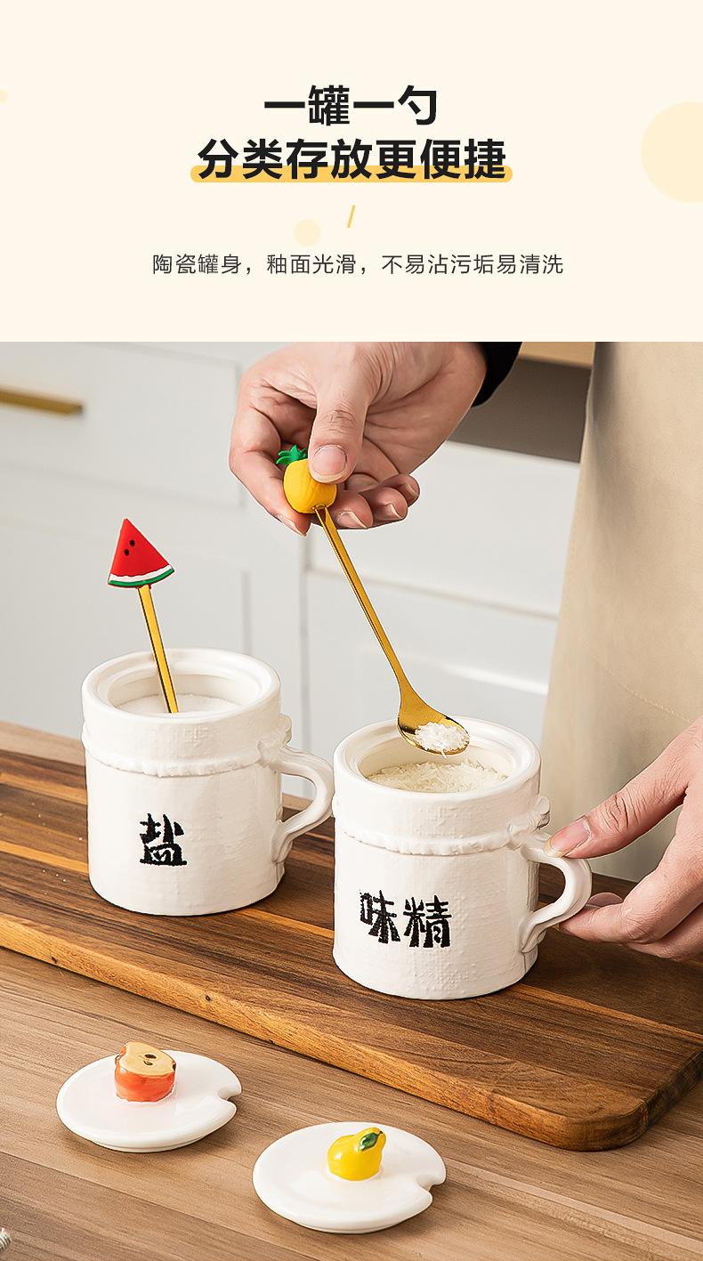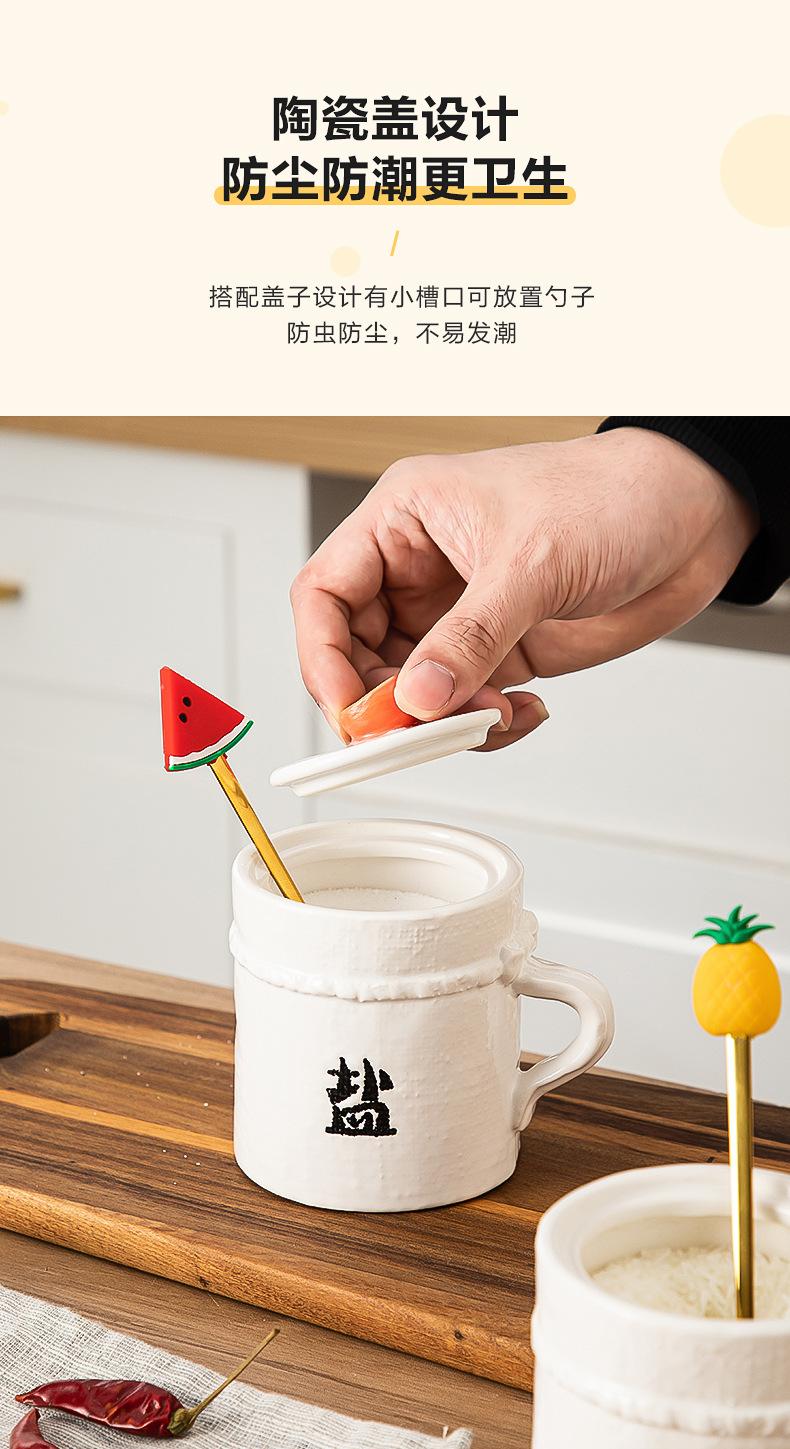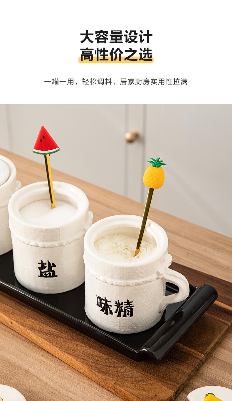 Tarro de Condimento de Cerámica con Cuchara Juego de Caja de Almacenamiento de Sal, MSG, Azúcar para Cocina Tarro de Chile para Hogar con Tapa Tarro de Condimento al Mayoreo