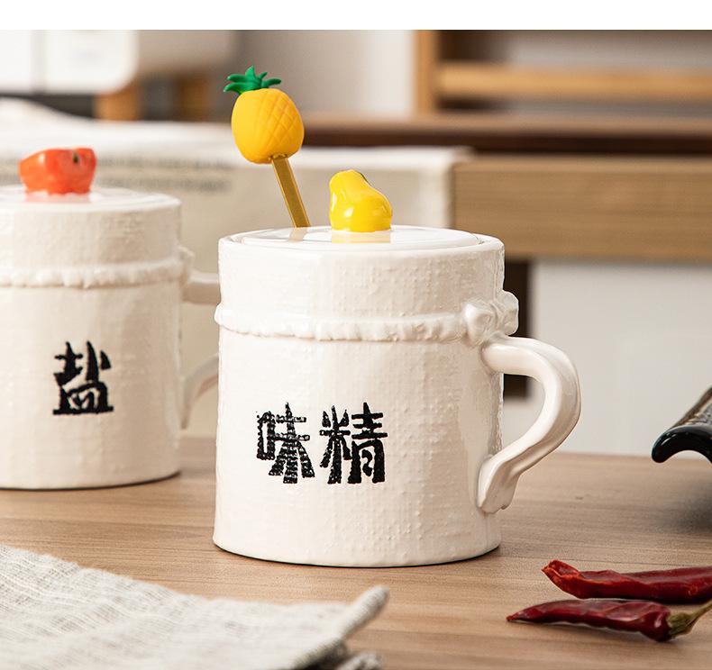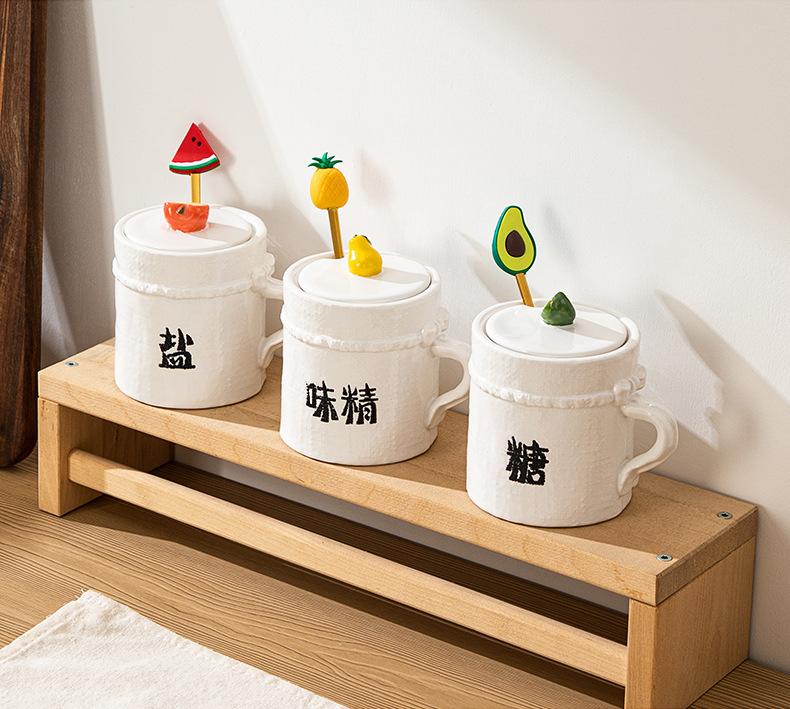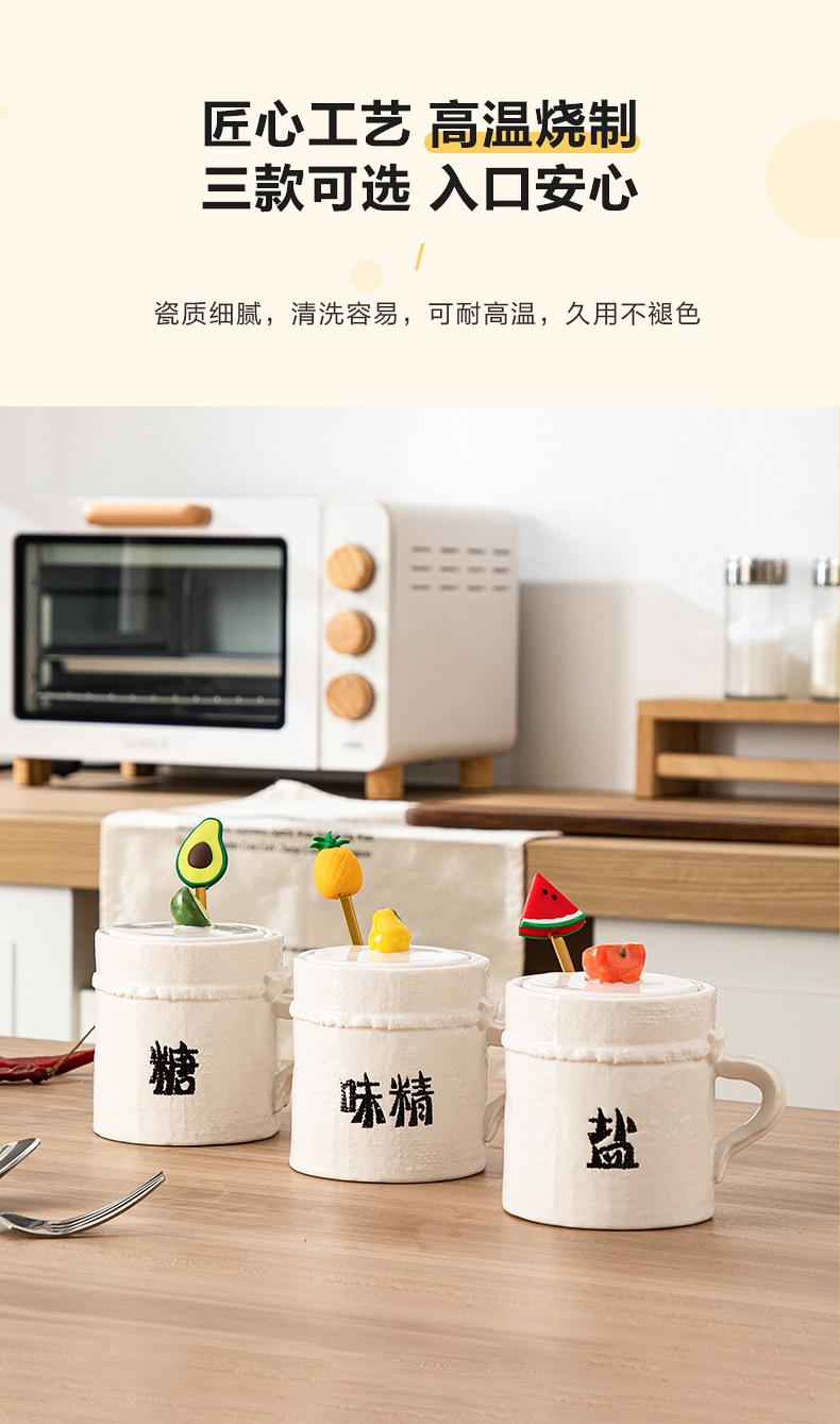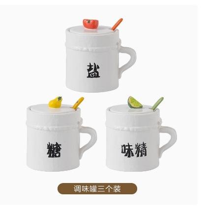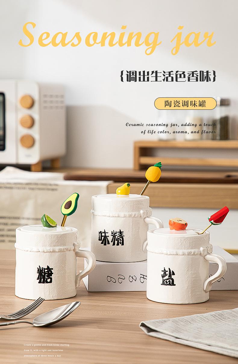Tarro de Condimento de Cerámica con Cuchara Juego de Caja de Almacenamiento de Sal, MSG, Azúcar para Cocina Tarro de Chile para Hogar con Tapa Tarro de Condimento al Mayoreo