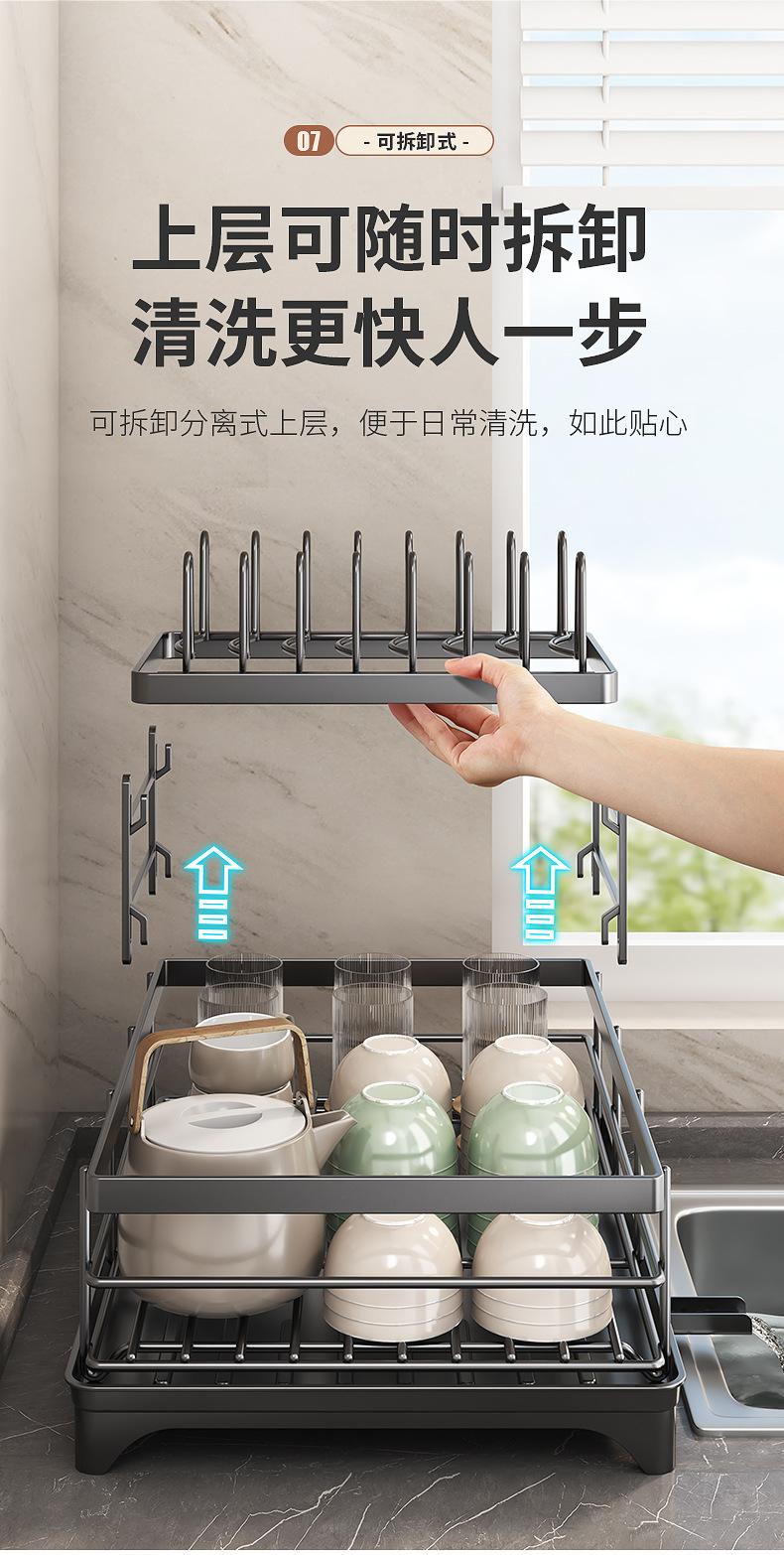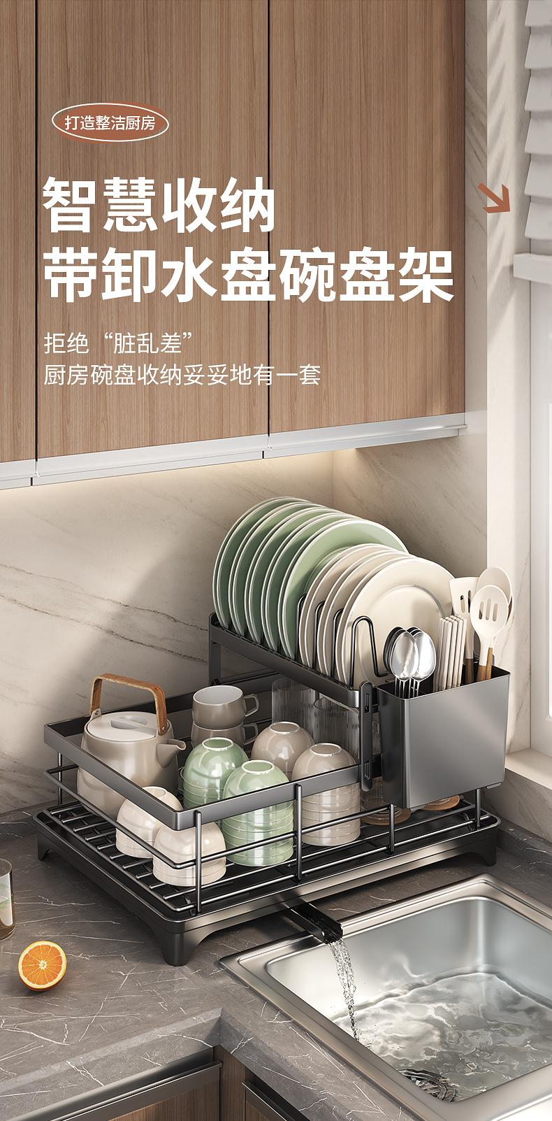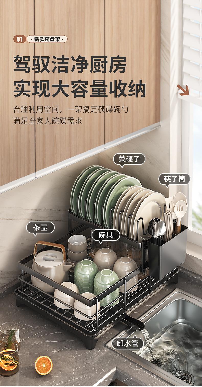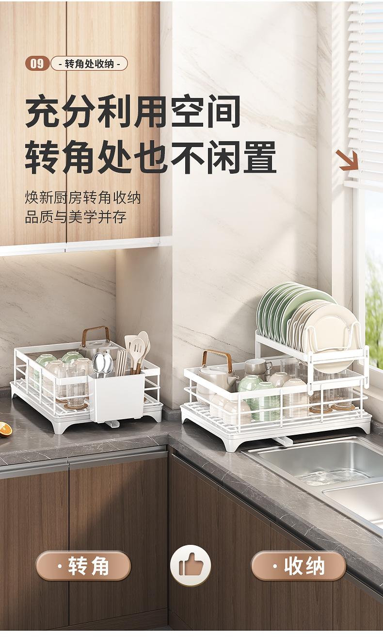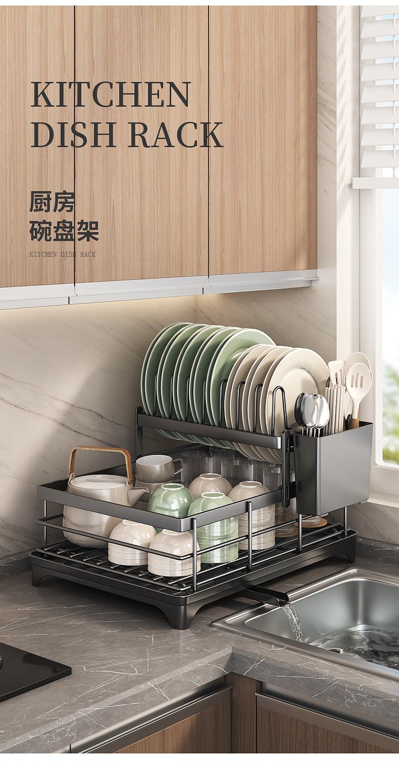 Escurridor de Platos Transfronterizo Estante de Almacenamiento de Cocina Cesta para Tazones y Palillos Estante Escurridor de Platos Multicapa para Encimera Doméstica Estante de Almacenamiento
