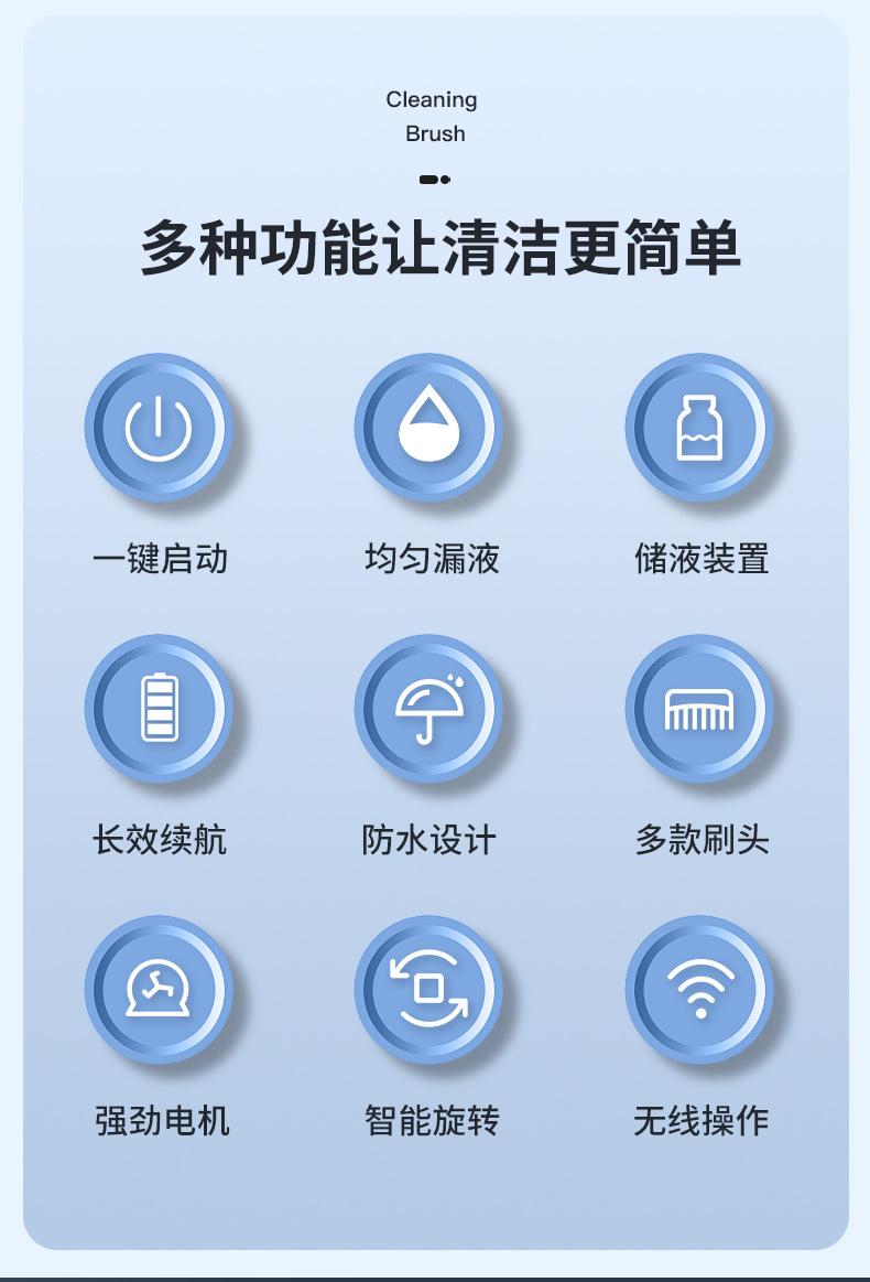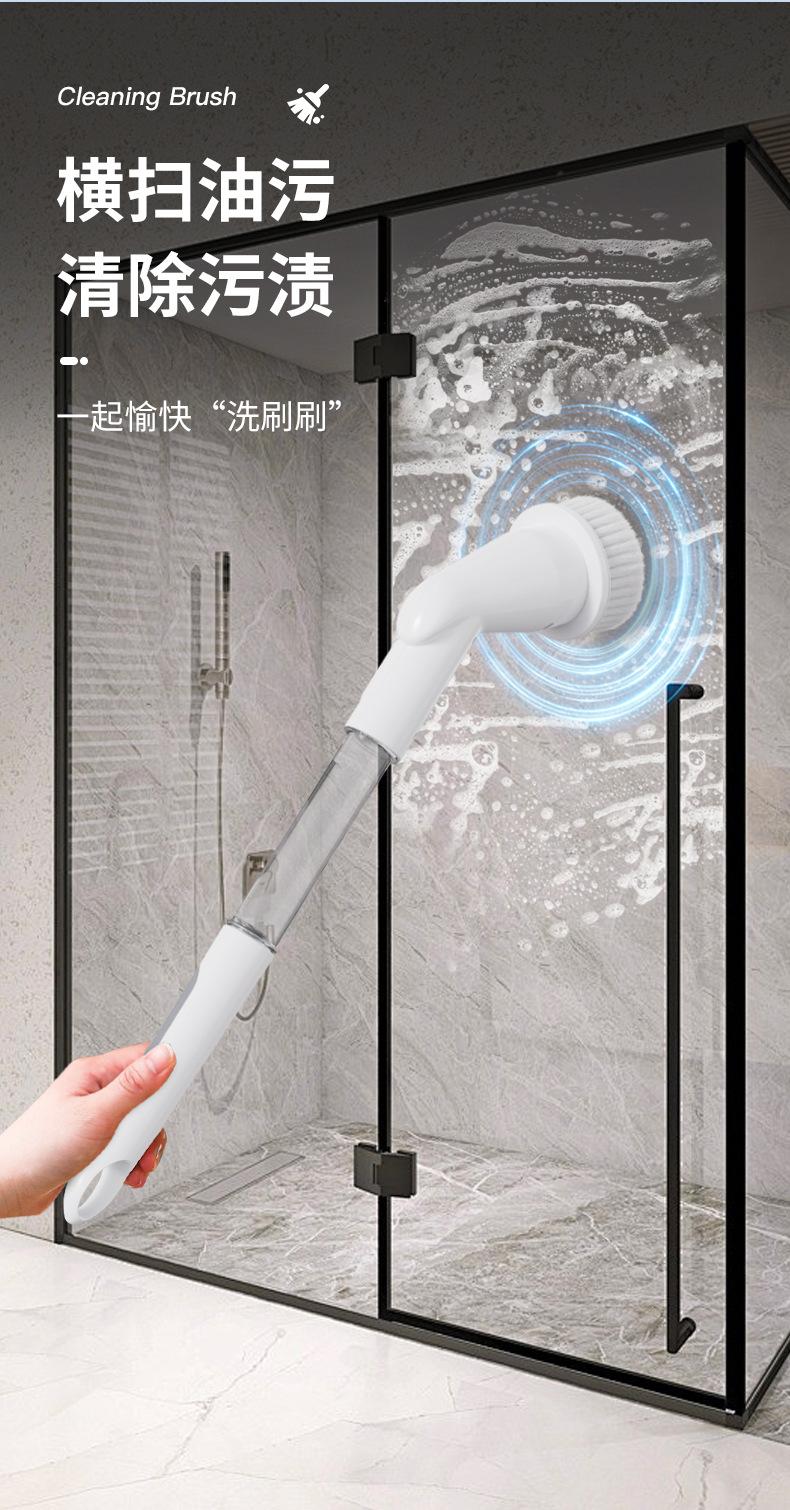 Cepillo de limpieza eléctrico inalámbrico de mango largo con extensión líquida ocho en uno para carga de mano, cepillo para baño, cepillo para lavado de autos