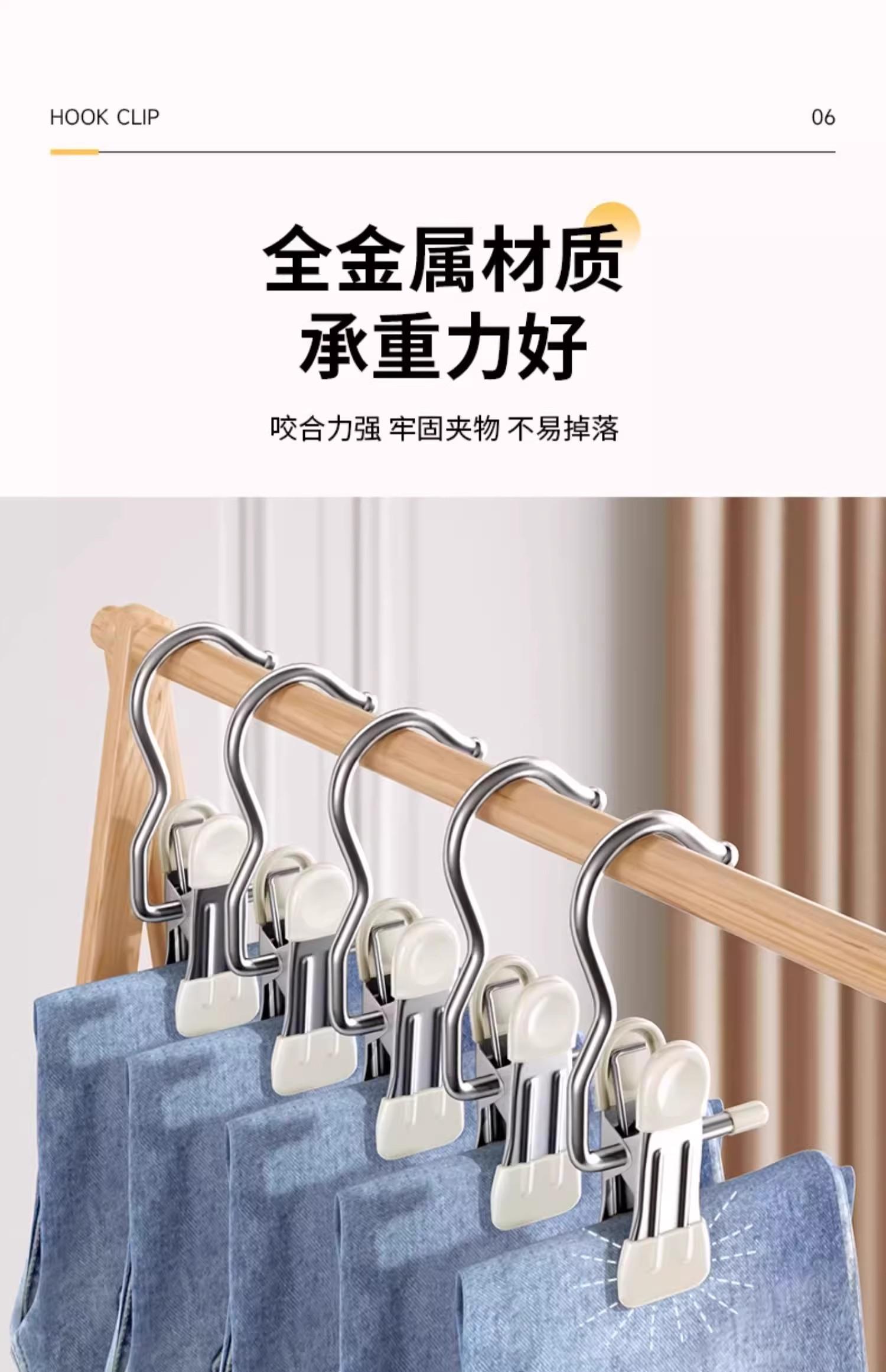 Clip de 3 palabras de acero inoxidable con gancho, multifuncional, sin costuras, para pantalones, resistente a la corrosión, para guardar sombreros, pantalones cortos y calcetines.