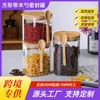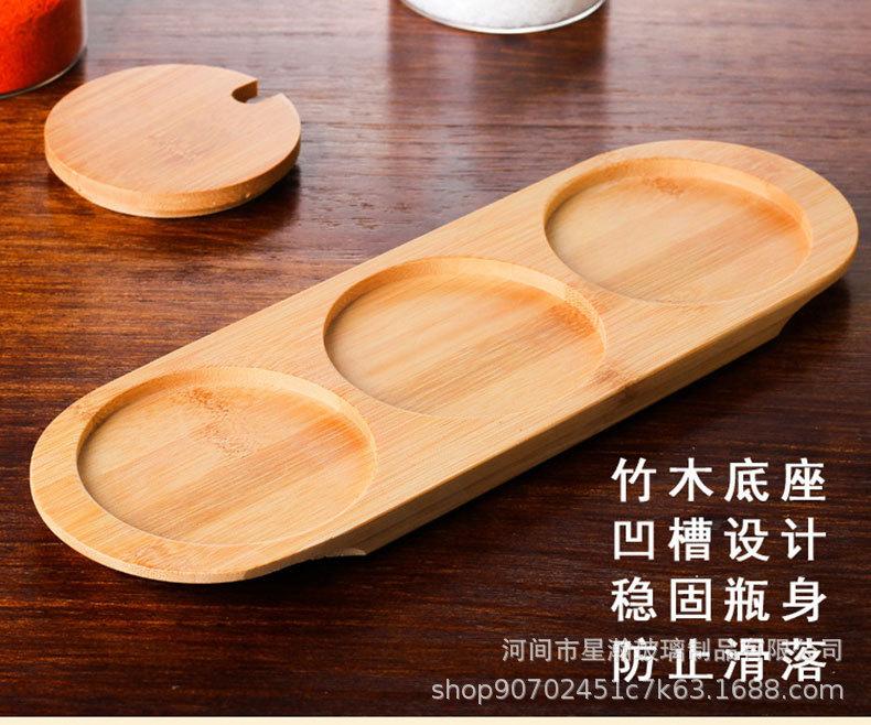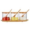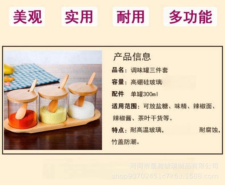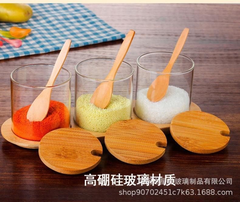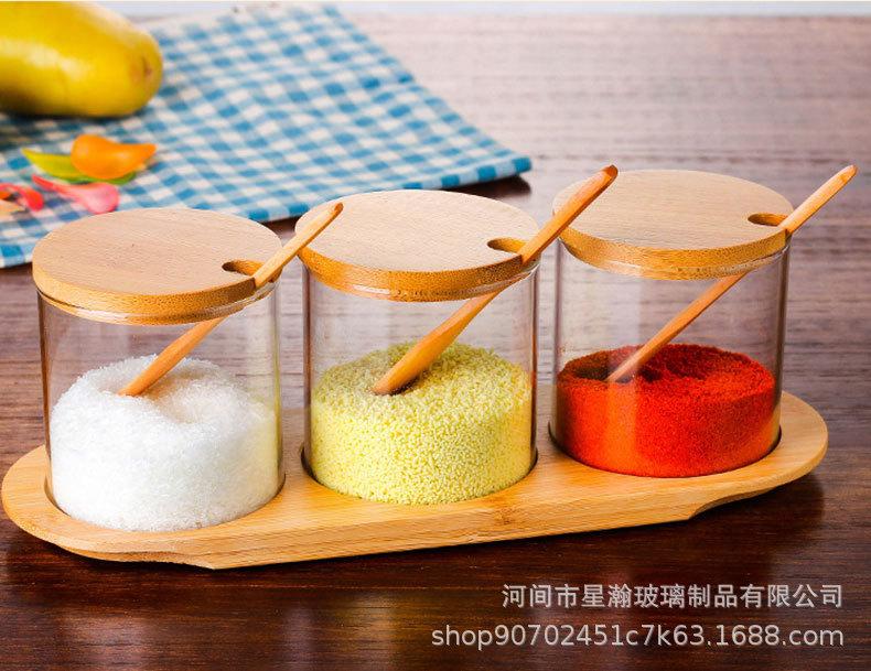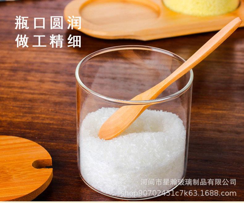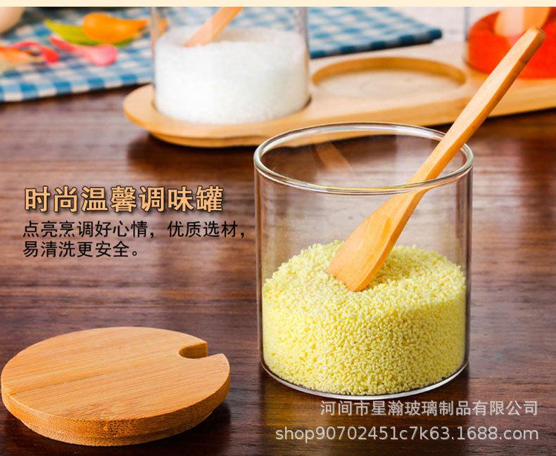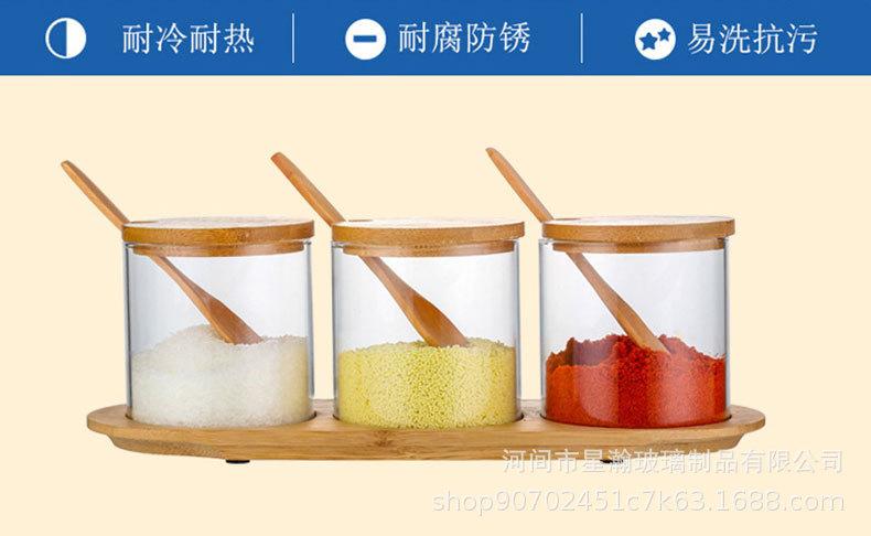 Tarro de condimento de vidrio de borosilicato de alta calidad, tarro de almacenamiento transparente con cuchara, tapa de bambú, tarro de almacenamiento sellado de tres piezas para el hogar de alto valor de color