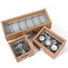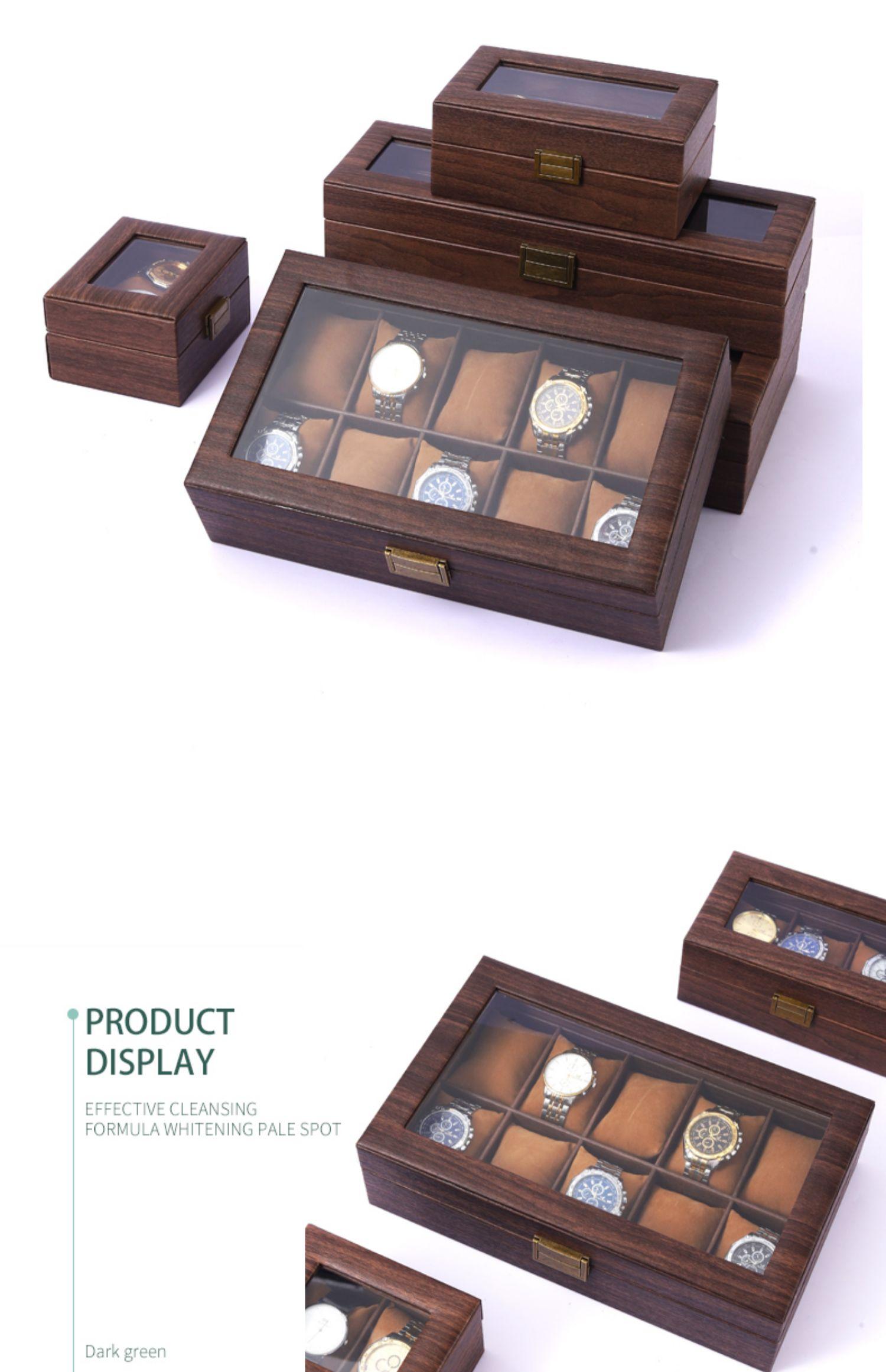 Caja de reloj de cuero con vetas de madera, caja de almacenamiento de joyas, claraboya de vidrio, caja de colección de relojes de pulsera, caja de exhibición de relojes de pulsera