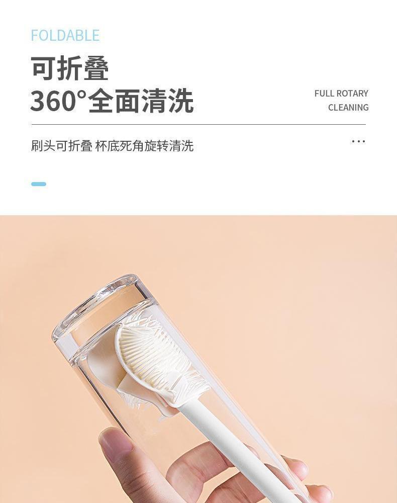 Cepillo para Botella de Silicona de Lana Suave Plegable Vaso Artefacto Sin Ángulo Muerto Mango Largo Cepillo Limpiador de Vaso de Agua Multifuncional Lavado Biberón
