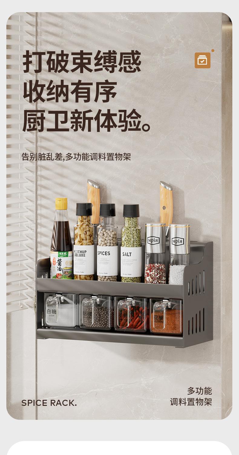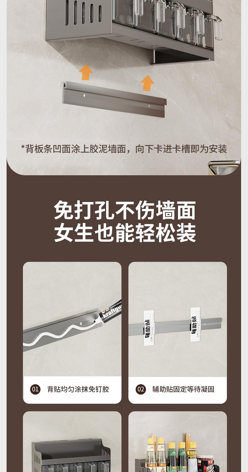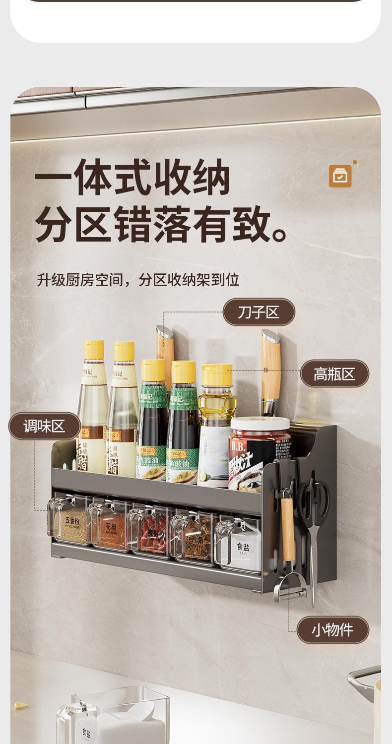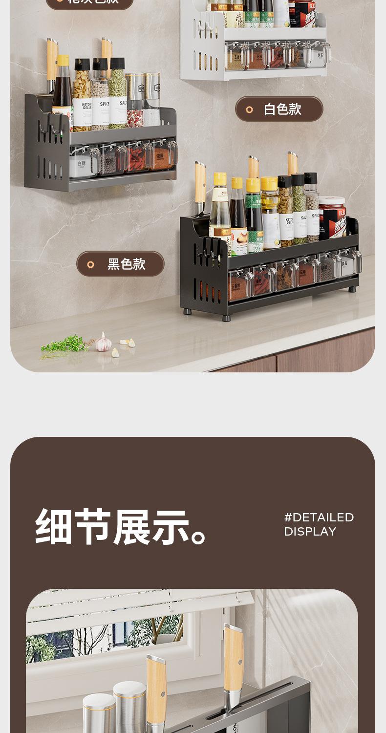 Estante de almacenamiento de cocina sin perforaciones, montado en la pared, para condimentos domésticos, palillos, soporte para cuchillos, suministros, estante de almacenamiento completo