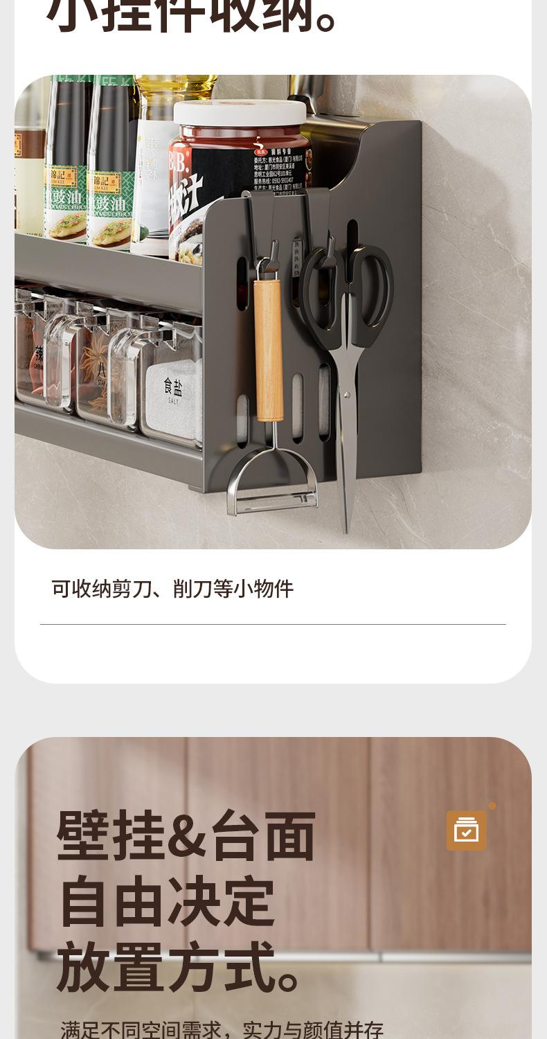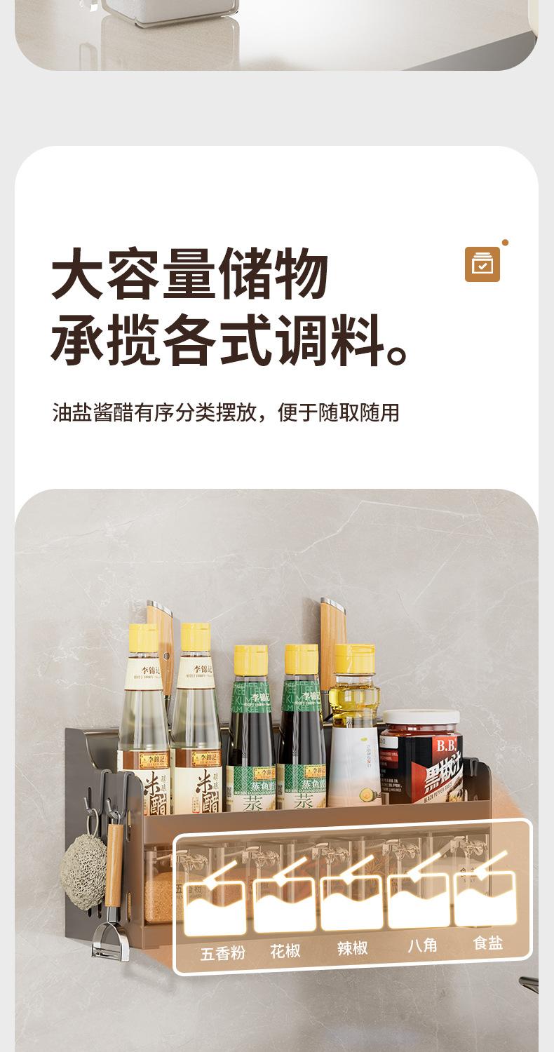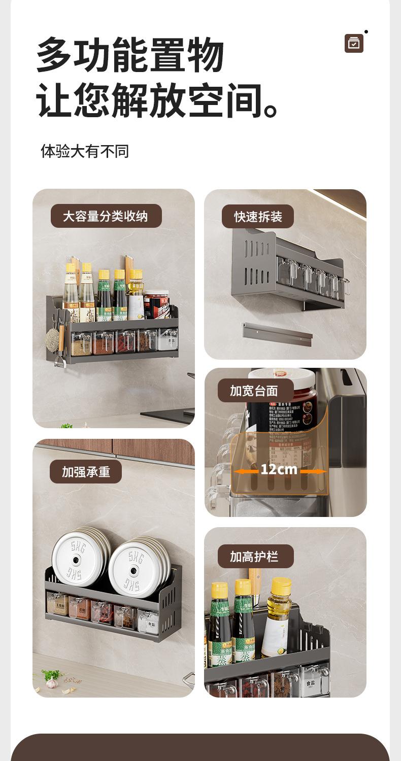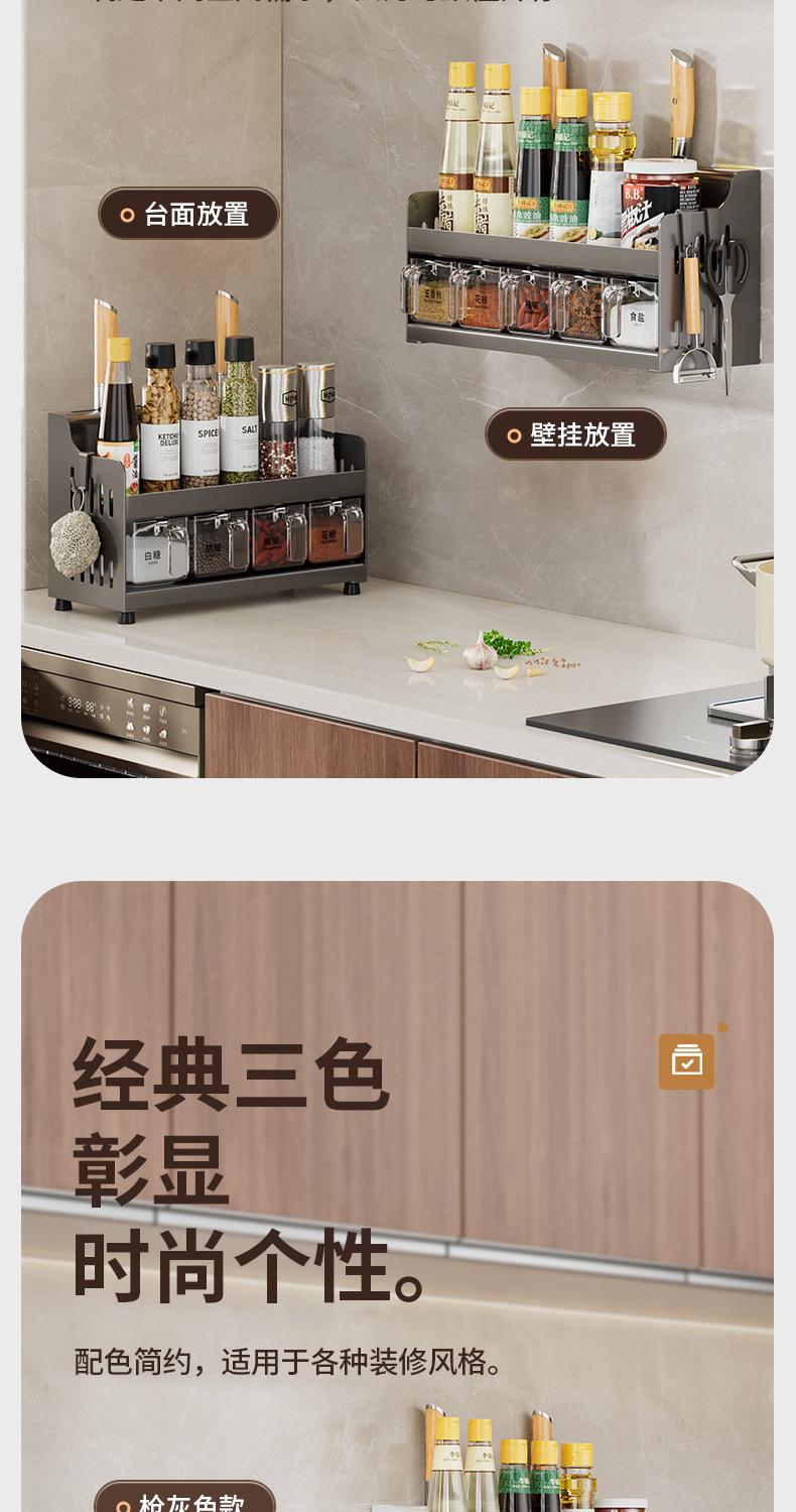 Estante de almacenamiento de cocina sin perforaciones, montado en la pared, para condimentos domésticos, palillos, soporte para cuchillos, suministros, estante de almacenamiento completo