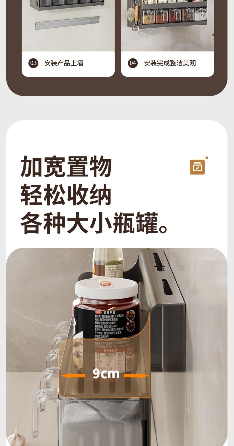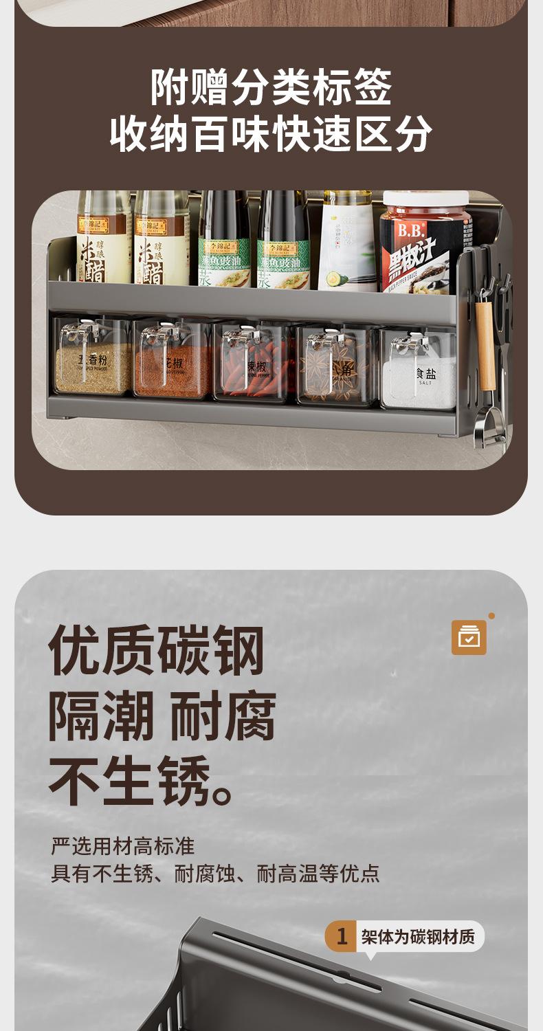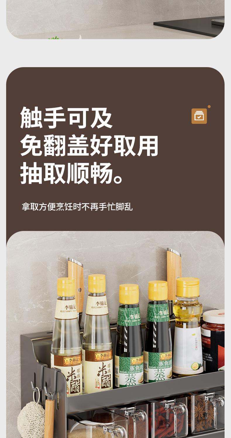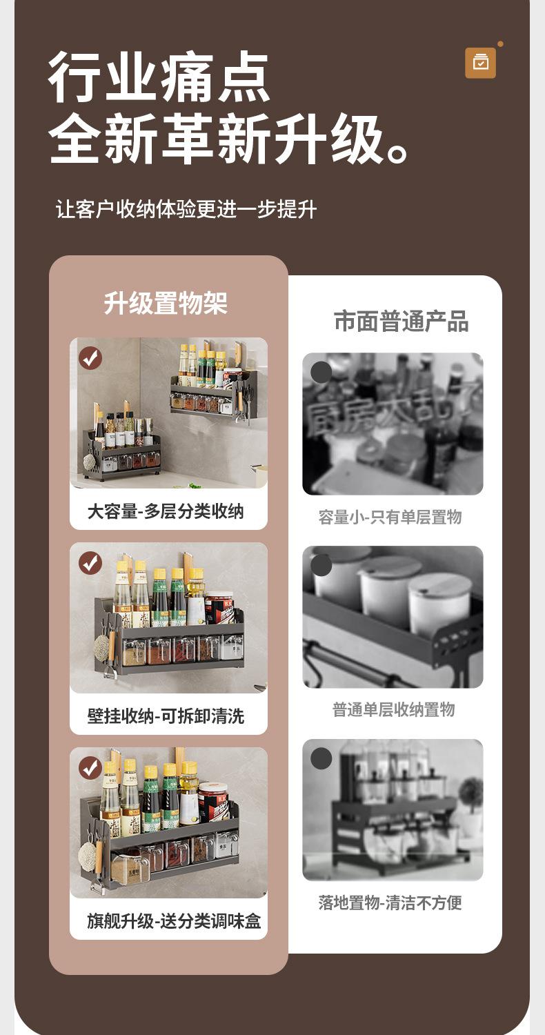Estante de almacenamiento de cocina sin perforaciones, montado en la pared, para condimentos domésticos, palillos, soporte para cuchillos, suministros, estante de almacenamiento completo