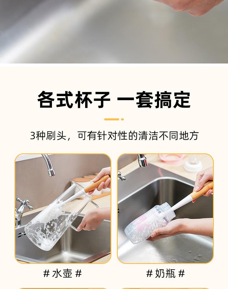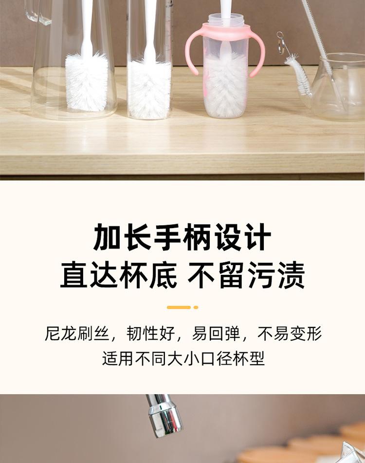Nuevo cepillo limpiador de tazas multifuncional cepillo de limpieza cepillo de mango largo cepillo limpiador de tres piezas limpieza de tazas cepillo especial para tetinas