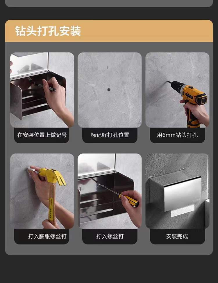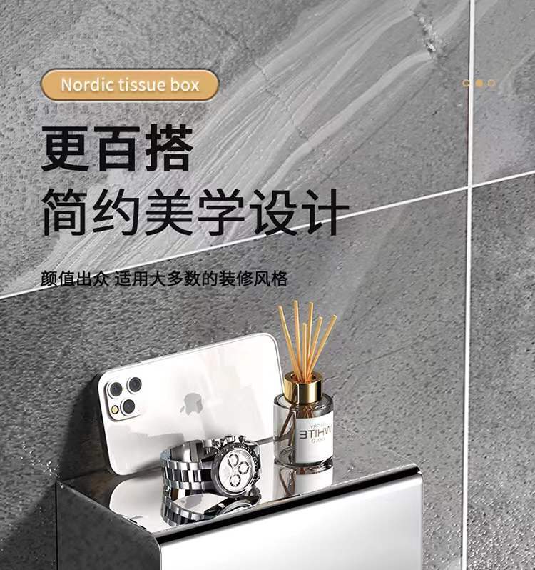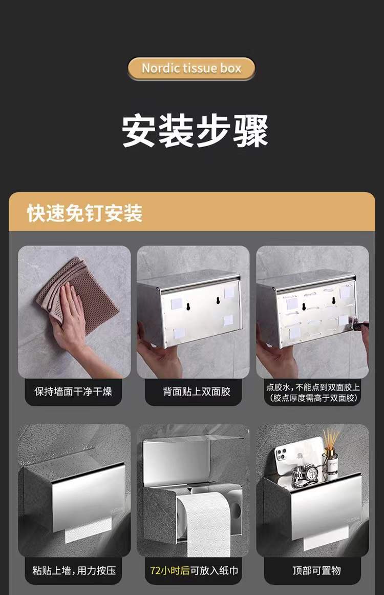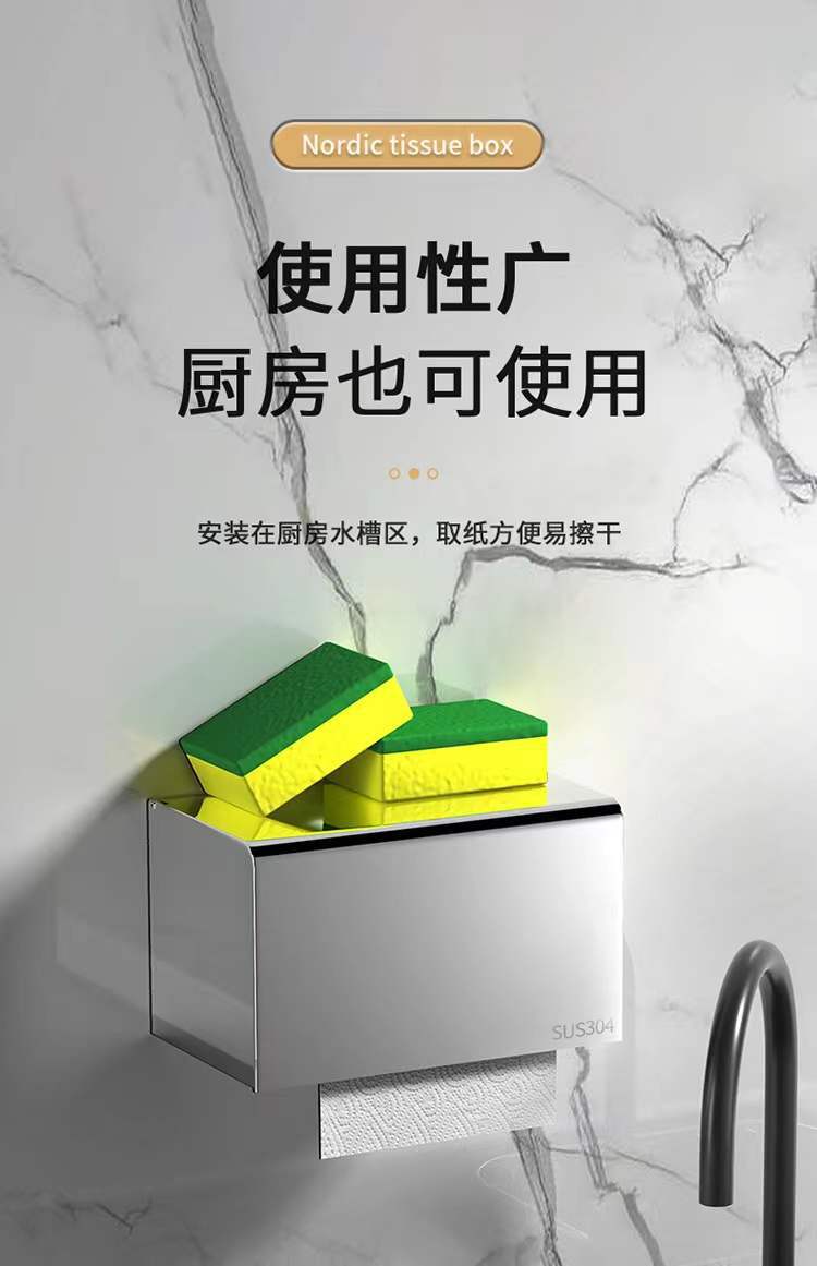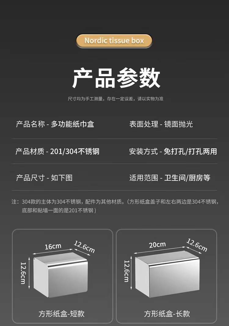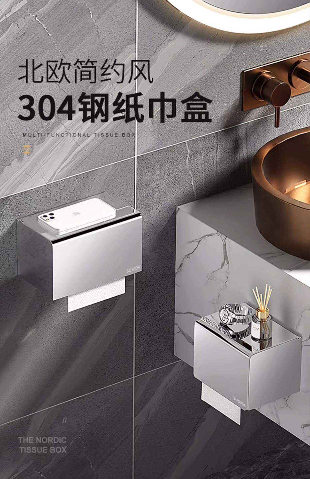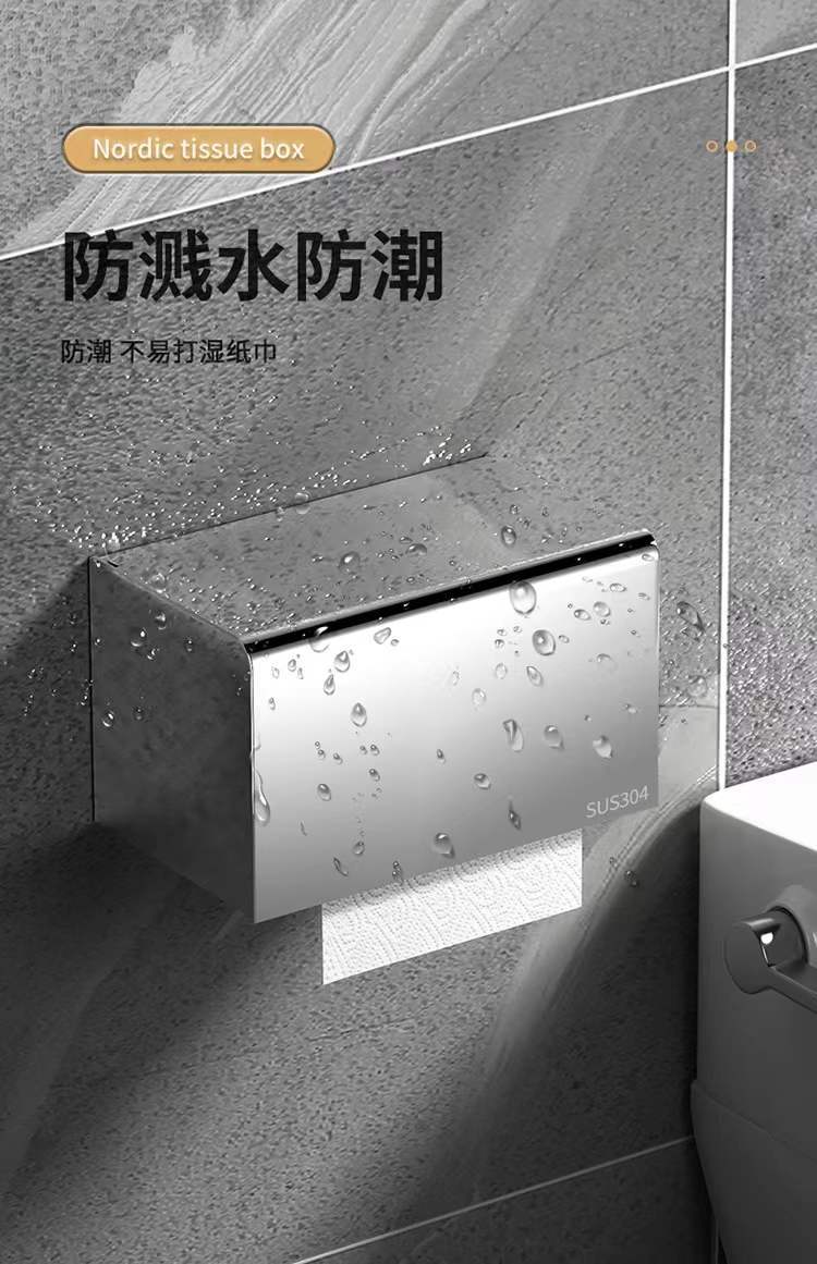 Caja de pañuelos de acero inoxidable 304 para baño, soporte cuadrado para pañuelos, caja de almacenamiento con ventosa para papel higiénico.