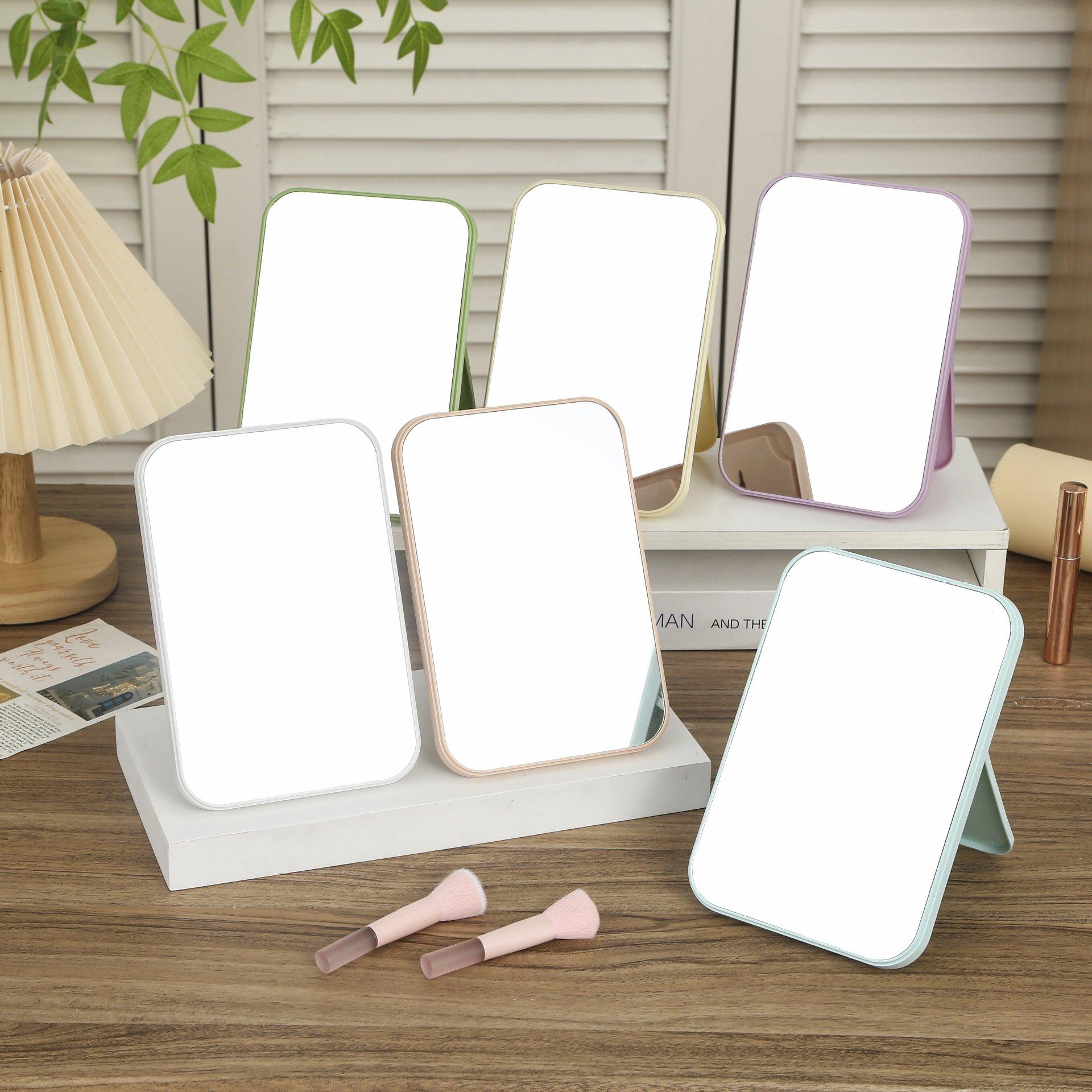 | Espejo de maquillaje de alta definición de un solo lado, espejo de tocador de mesa colorido, espejo cuadrado grande plegable y portátil tipo princesa. |
