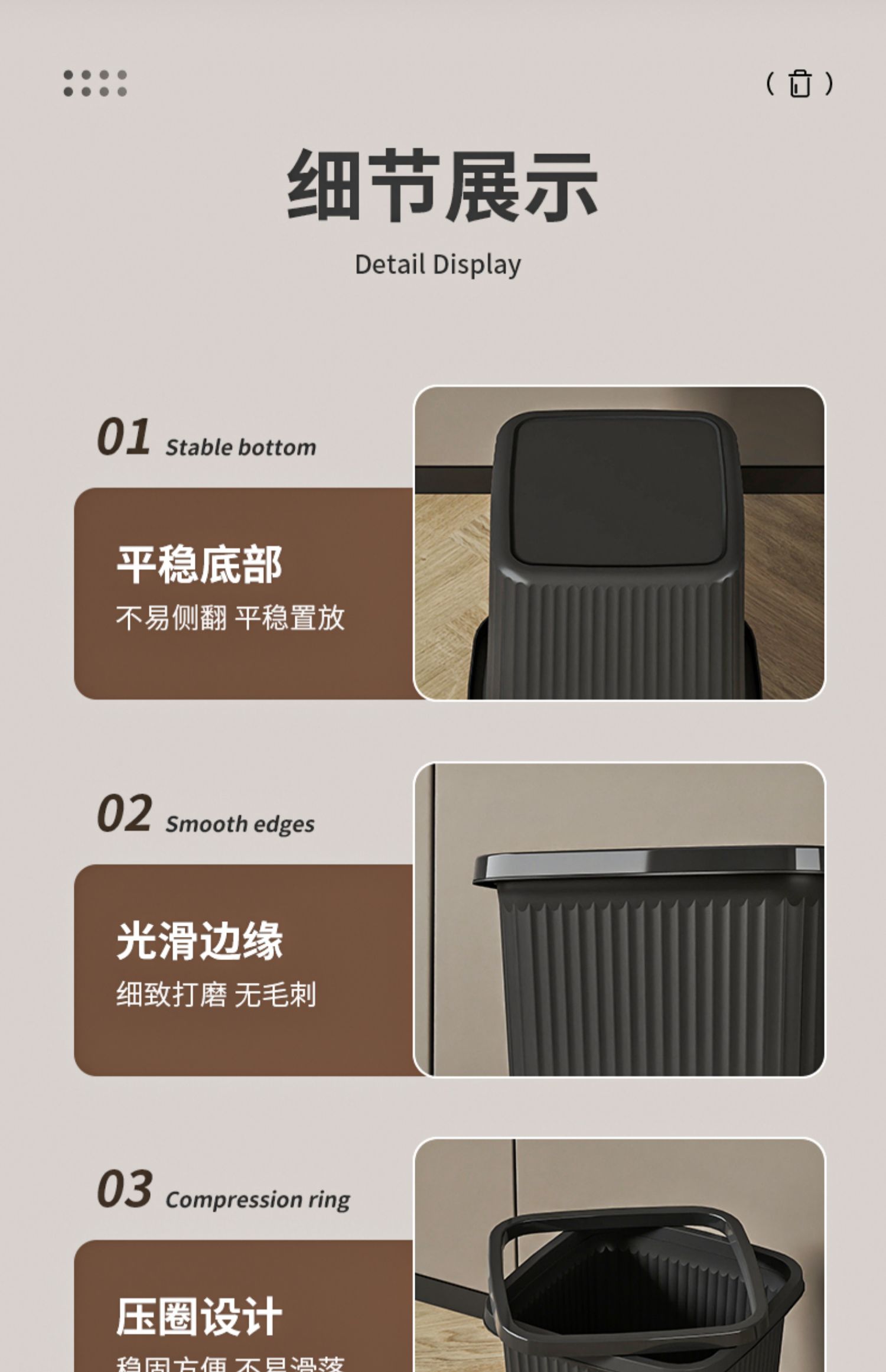 Bote de Basura Grande para Hogar, Baño, Anillo de Presión, Cocina, Recámara, Gran Capacidad, Oficina, Sala de Estar, Bote de Basura sin Tapa