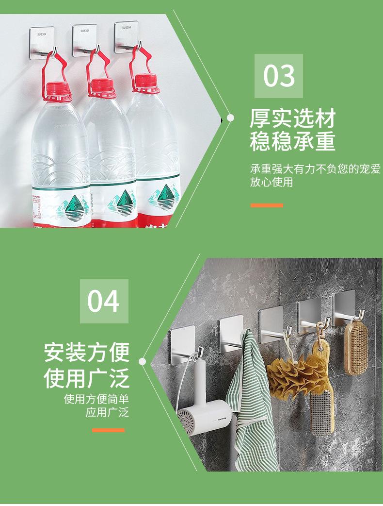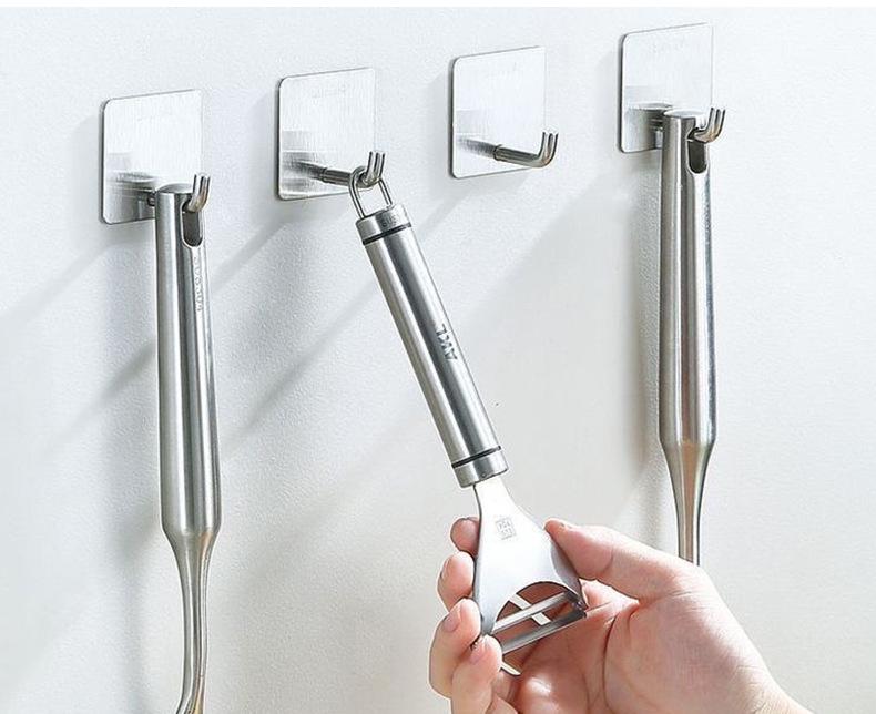 Ganchos de Acero Inoxidable, Sin Perforación, Adhesivo Fuerte Soporte de Carga, Ganchos para Colgar Ropa para Puerta, Ganchos de Pared para Sala de Estar, Cocina, Dormitorio