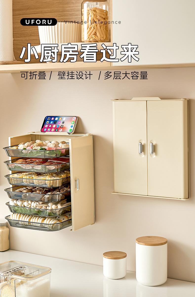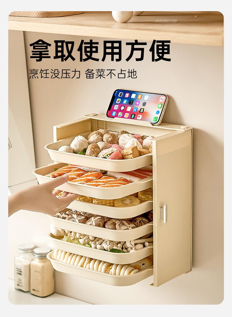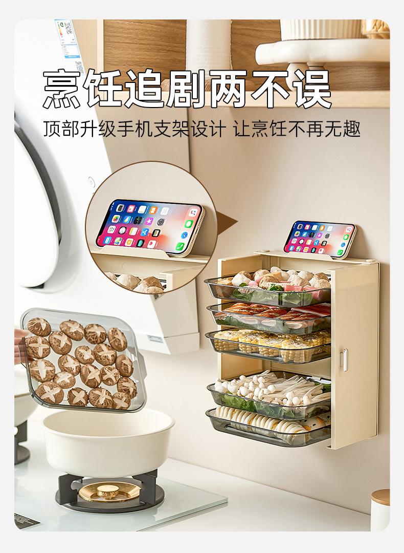 Estante de Almacenamiento para Preparación de Cocina, Bandeja Plegable Multifuncional para Guarniciones de Olla Caliente, Caja Doméstica Multicapa, Almacenamiento Plegable Montado en la Pared