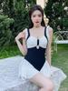 Traje de baño femenino estilo coreano ins delgado de una pieza cubre vientre pecho pequeño sexy un hombro traje de baño al por mayor pequeño fresco