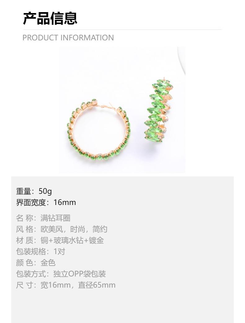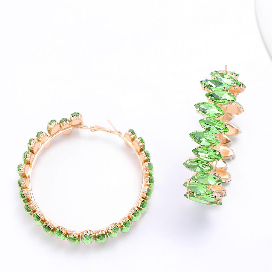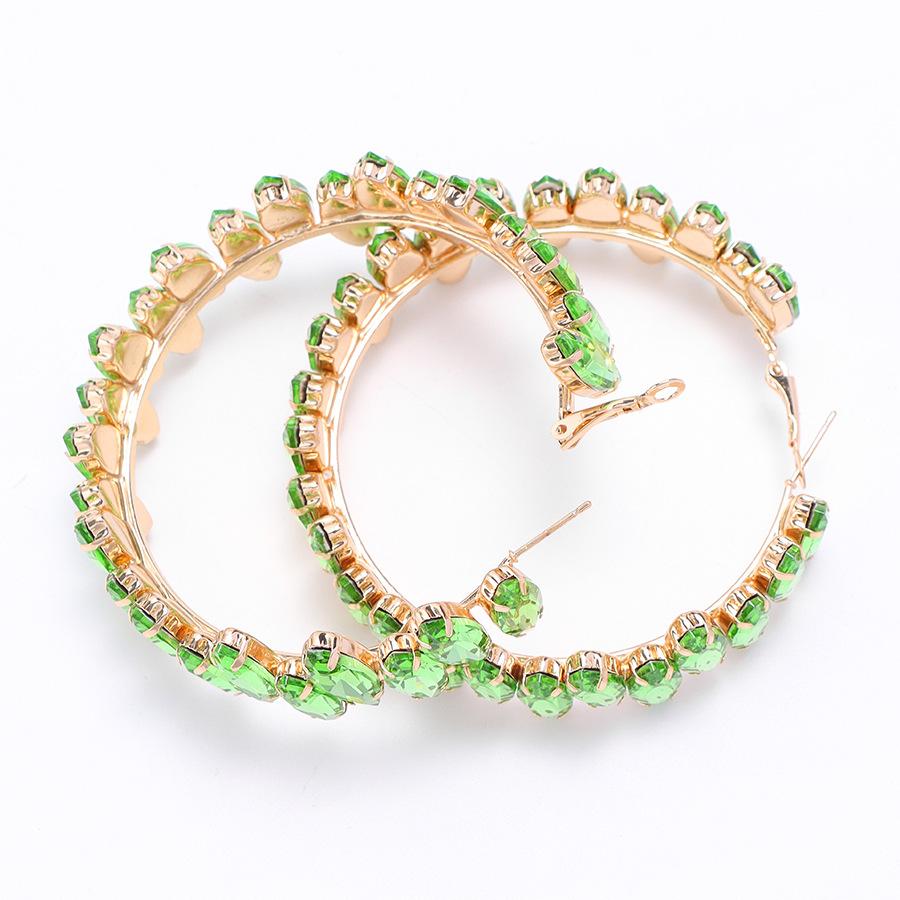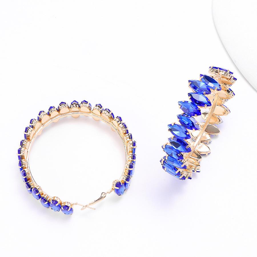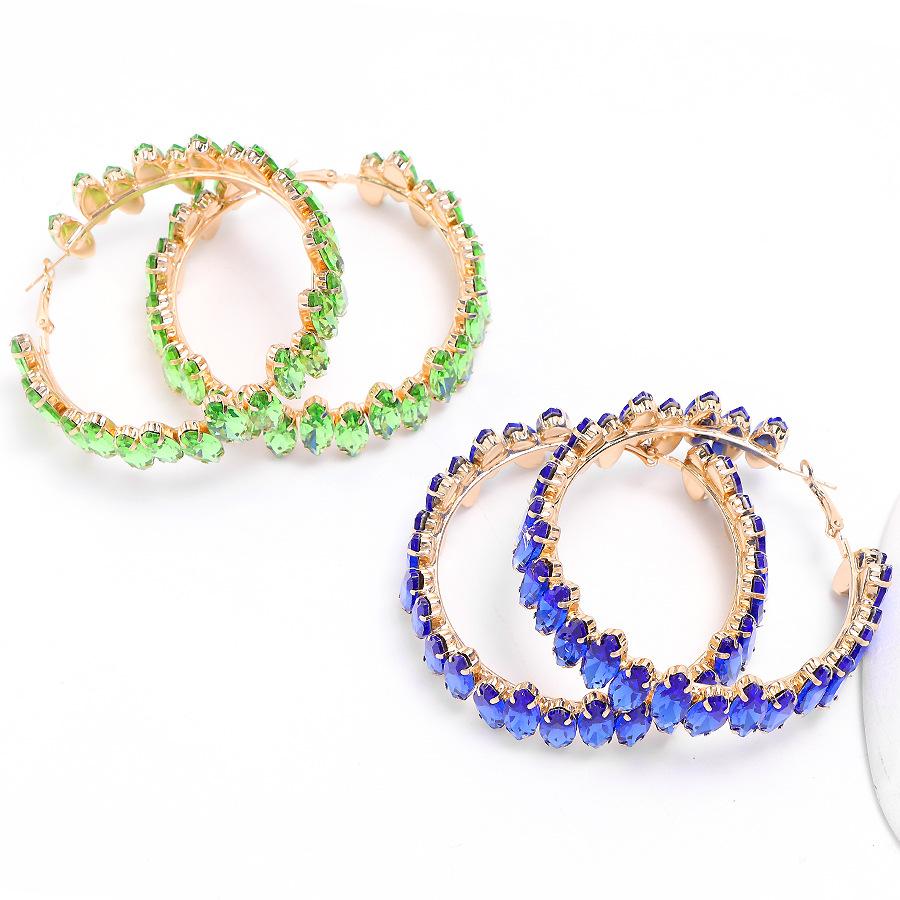 Moda Transfronteriza Europea y Americana Exagerados Diamantes Aretes de Anillo de Oreja Grande Accesorios de Banquete para Mujer Aretes de Pedrería de Vidrio de Alta Gama