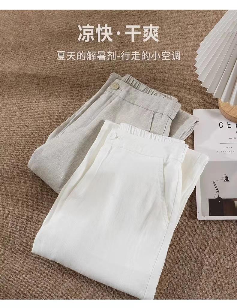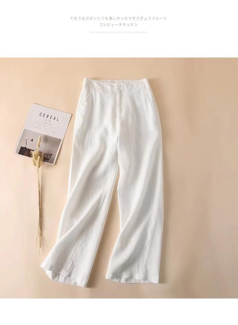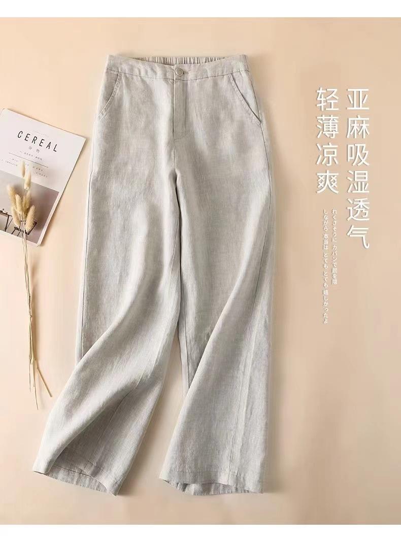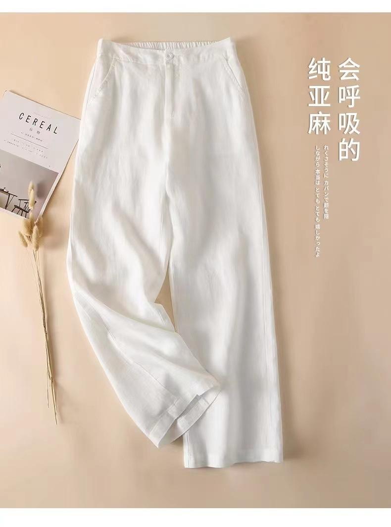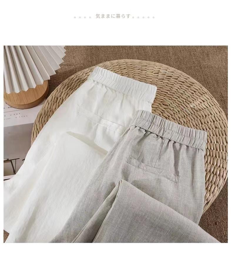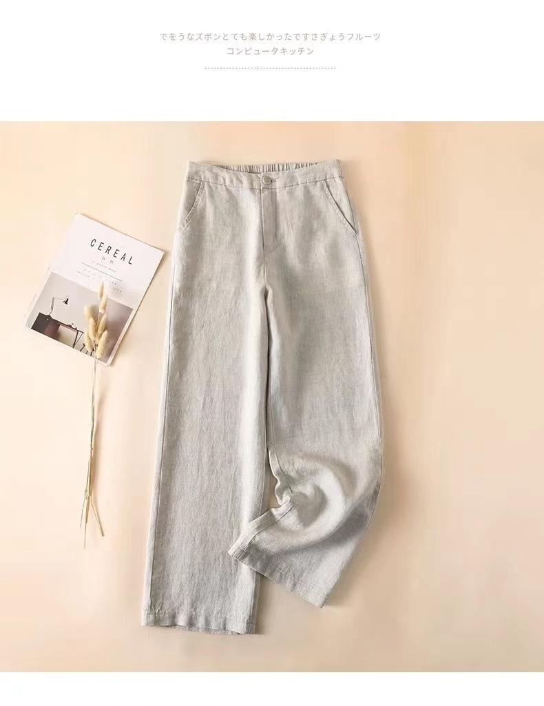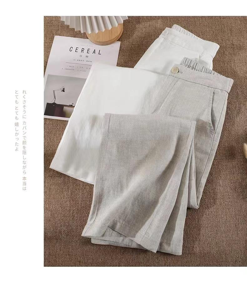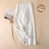 Otoño 2023 nuevos pantalones rectos casuales adelgazantes cropped de cintura alta de algodón y lino