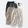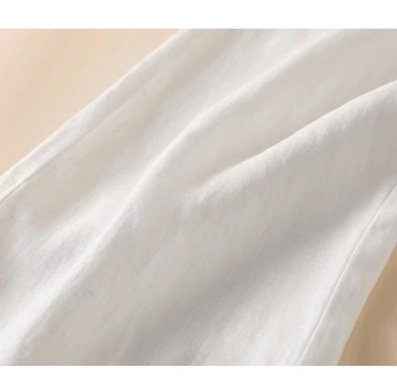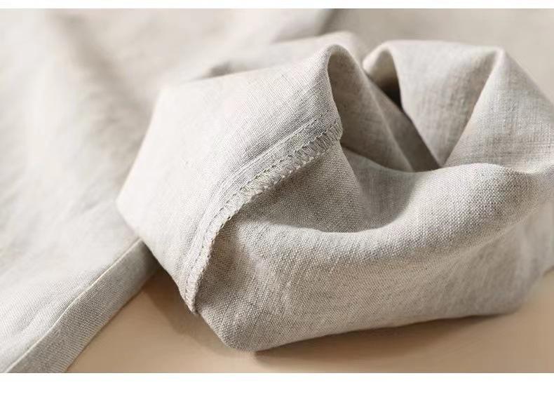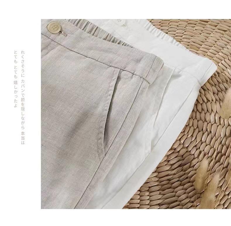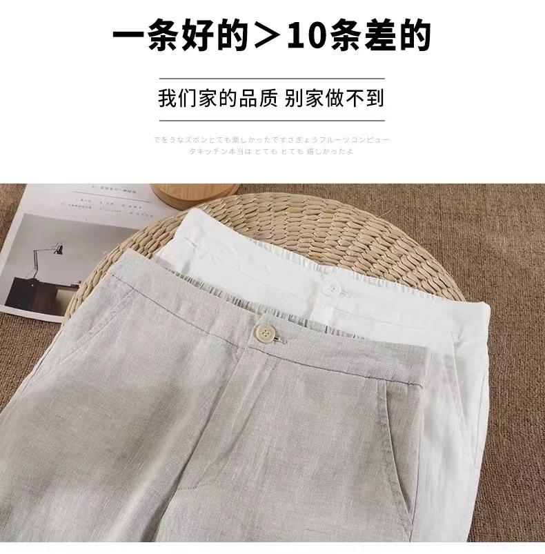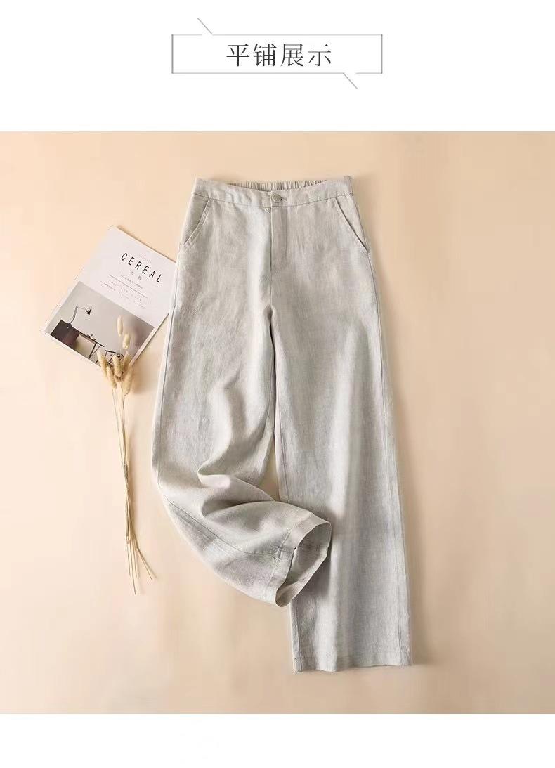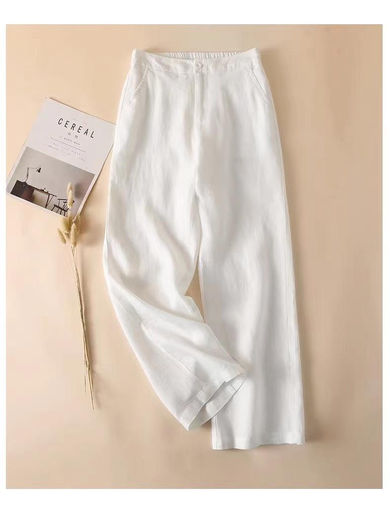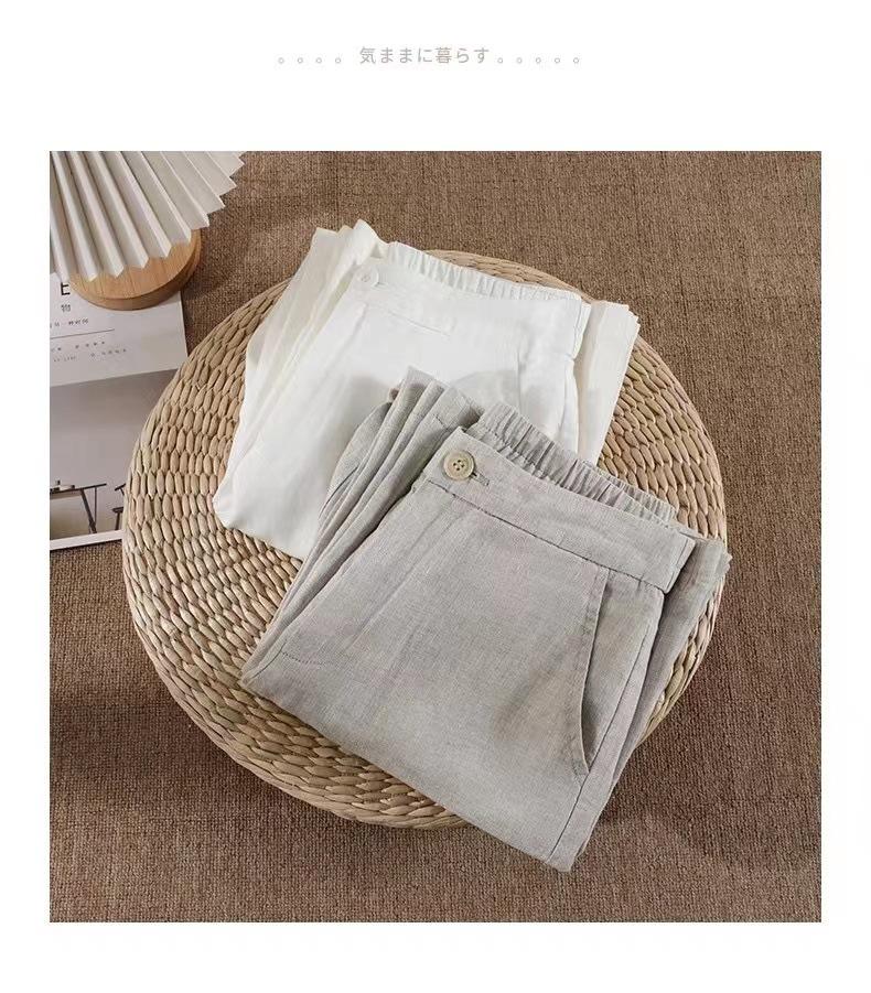Otoño 2023 nuevos pantalones rectos casuales adelgazantes cropped de cintura alta de algodón y lino