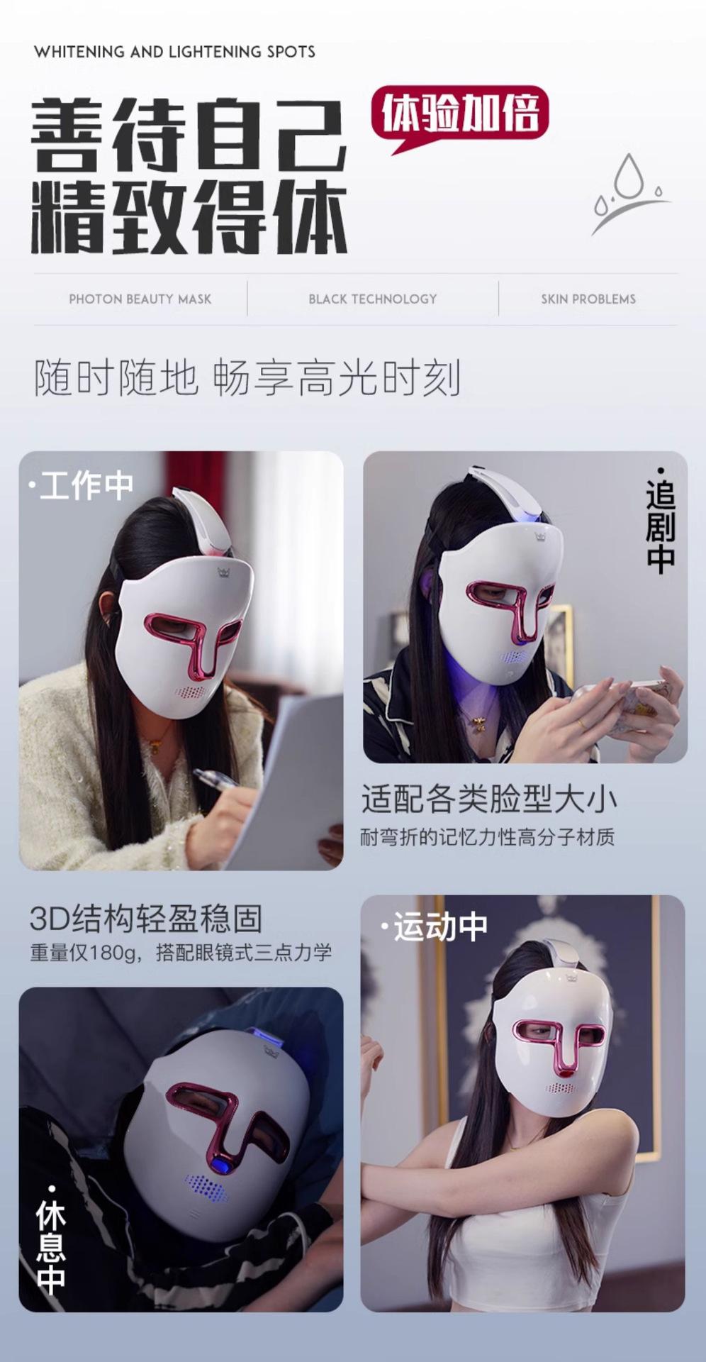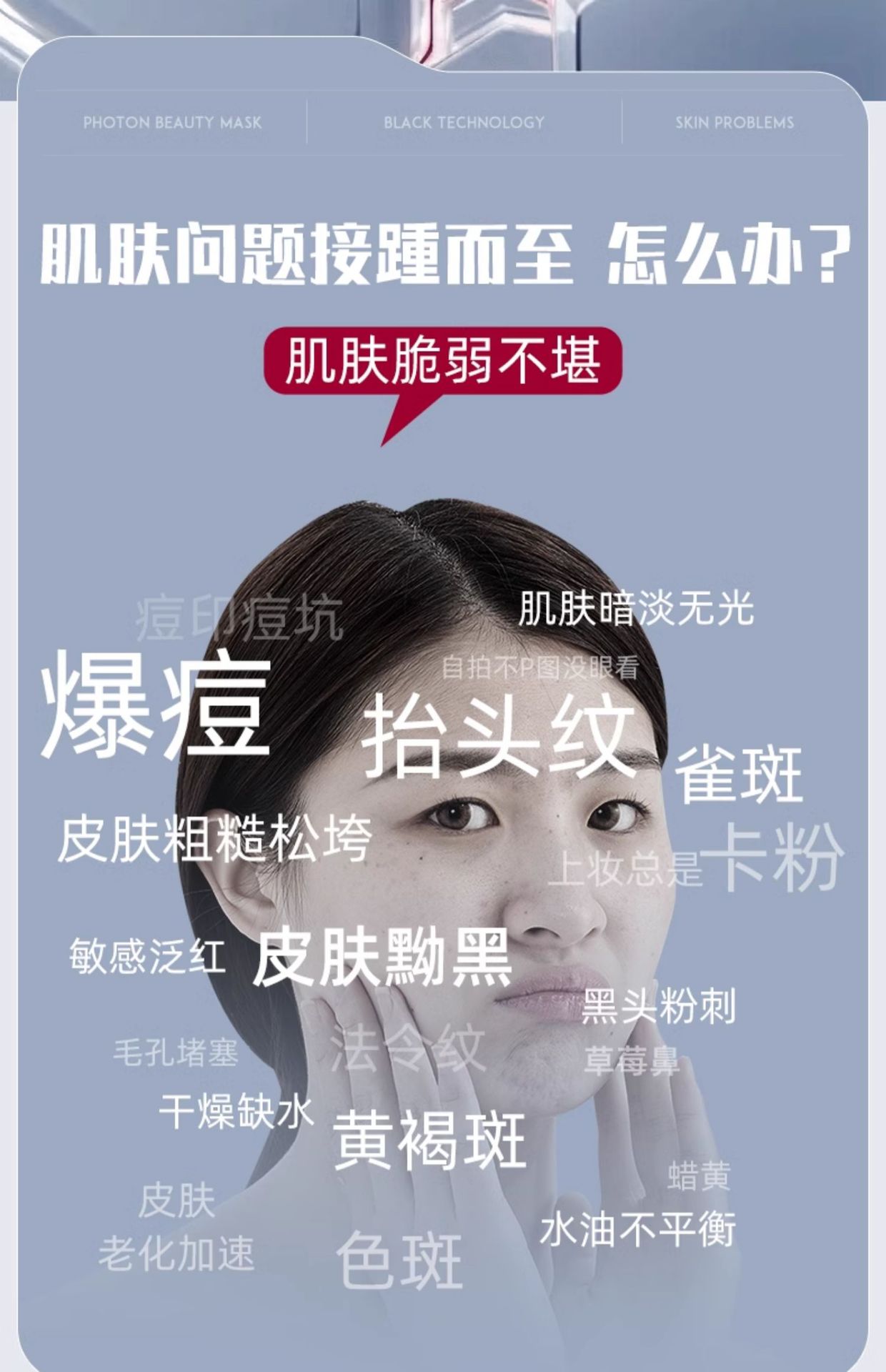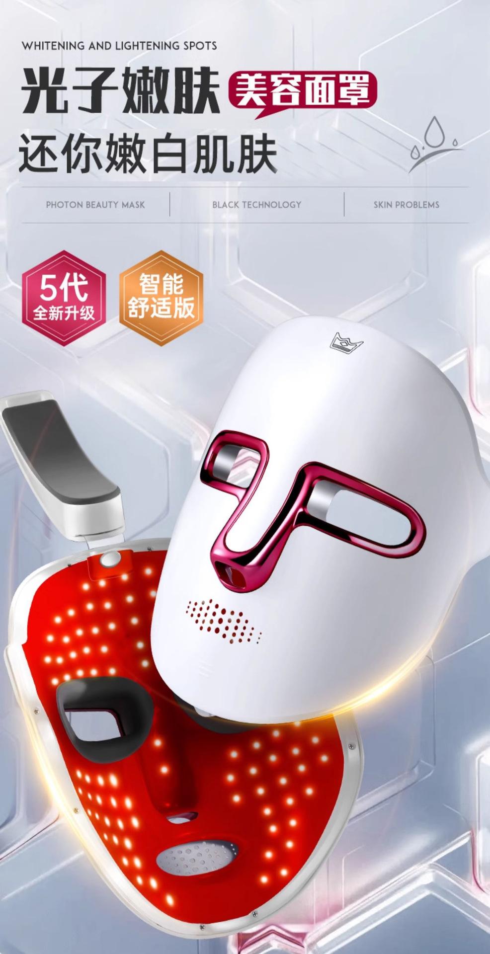 Máscara de rejuvenecimiento de la piel con fotones, instrumento de belleza para el hogar, luz LED roja y azul, luz facial de gran tamaño, máscara de luz de siete colores