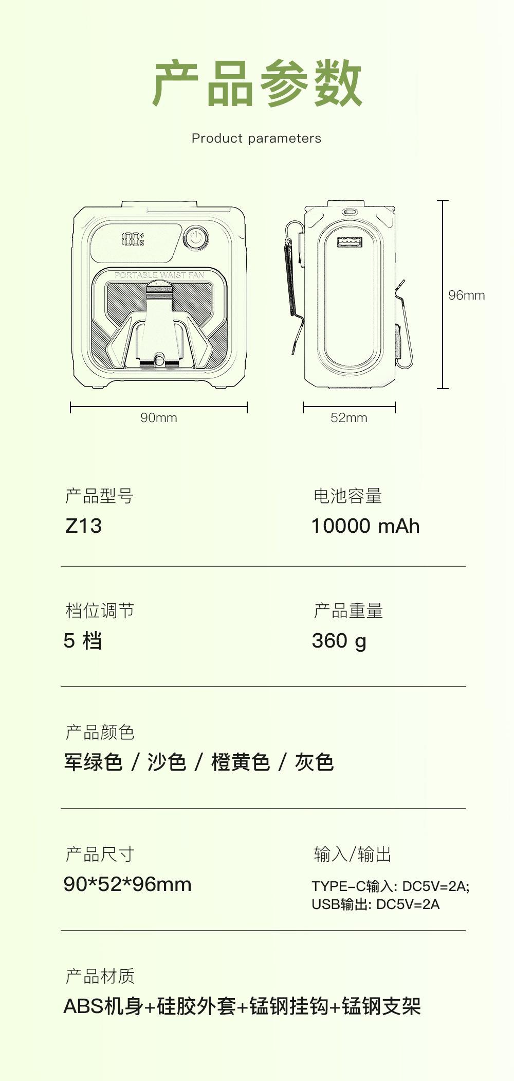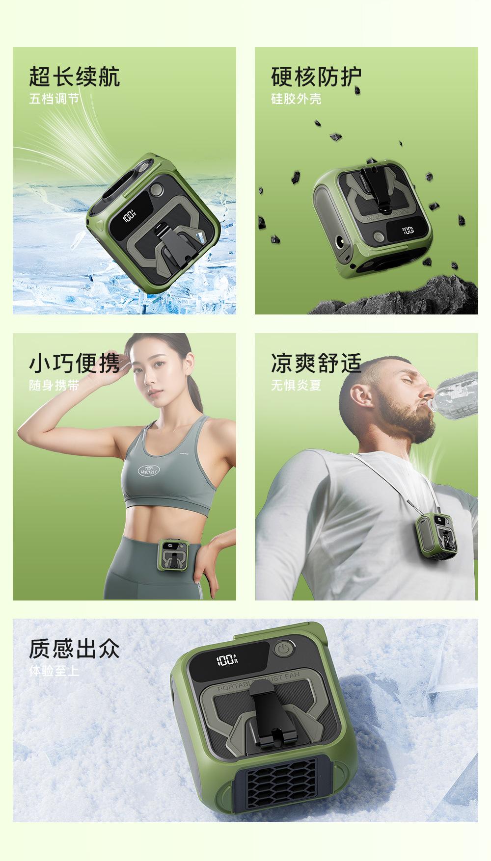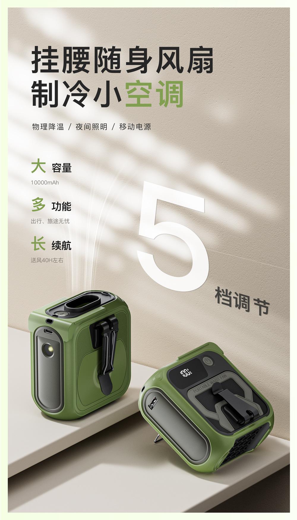 Ventilador de cintura colgante para exteriores, portátil, de larga duración, con carga USB, pantalla digital, novedad de 2025