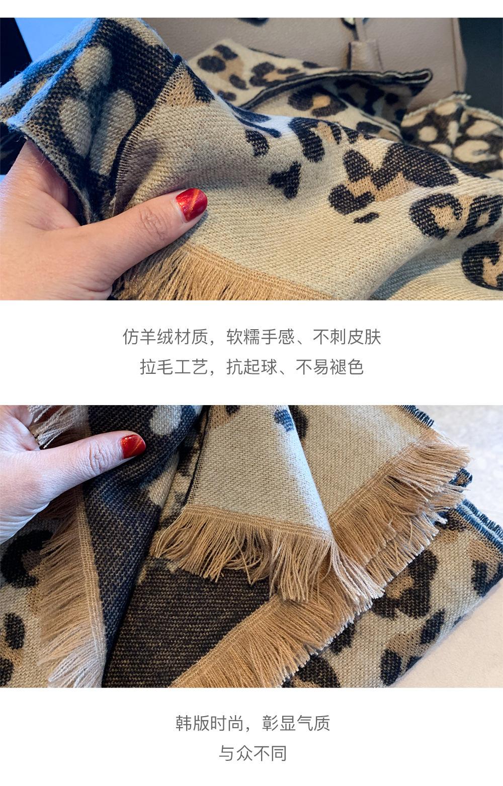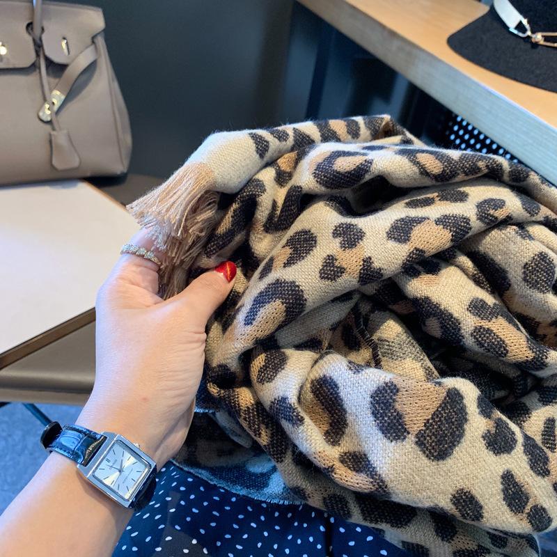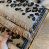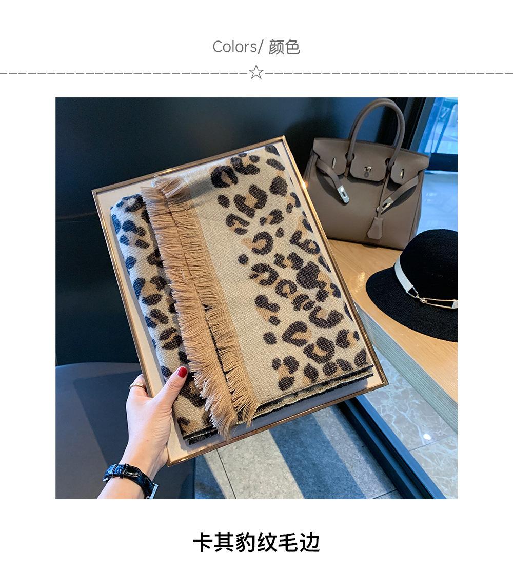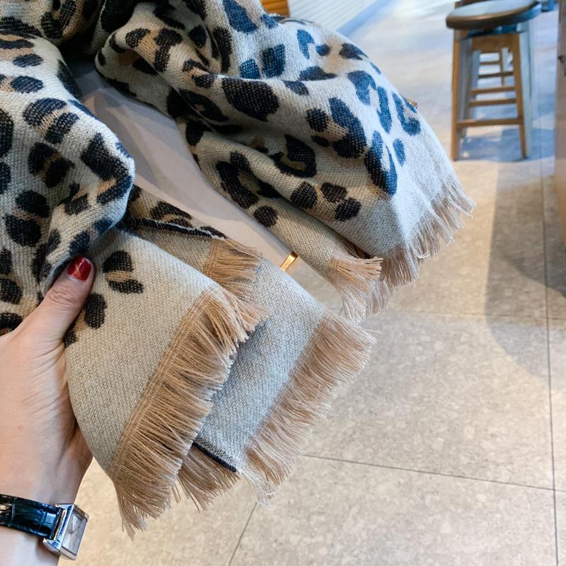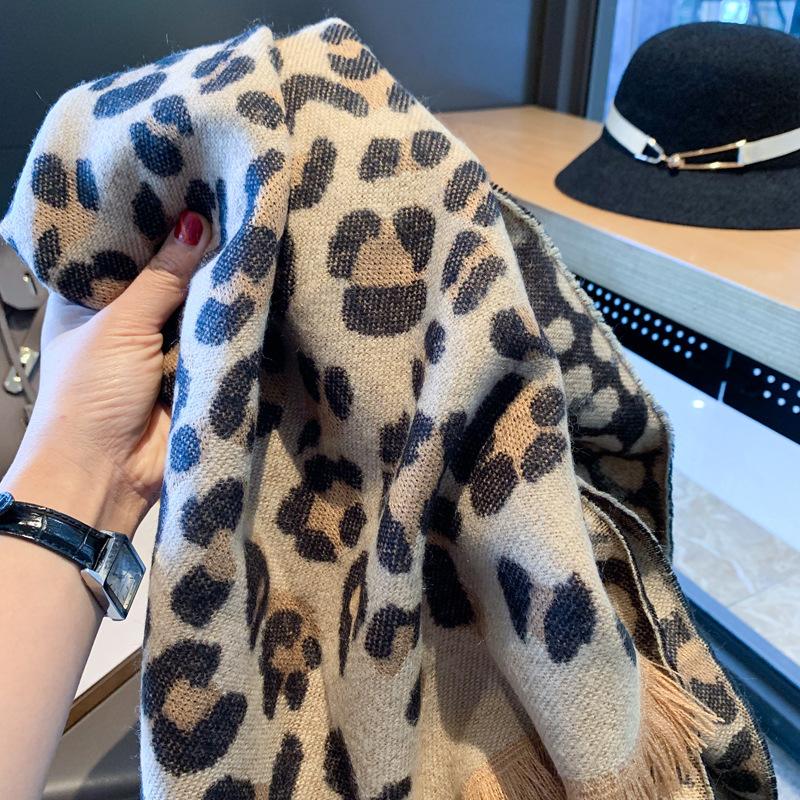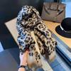 Bufanda de Cachemira Imitación para Mujer Estilo Coreano Otoño e Invierno Patrón Estampado de Leopardo Engrosada Cálida Larga con Borlas Chal Bufanda de Doble Uso