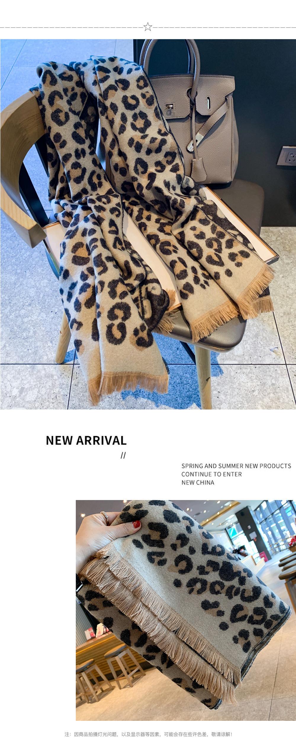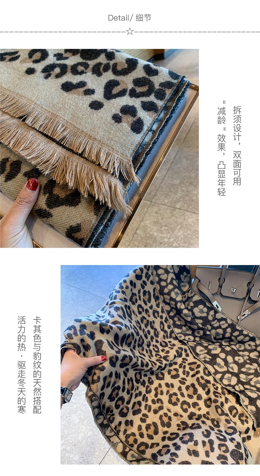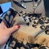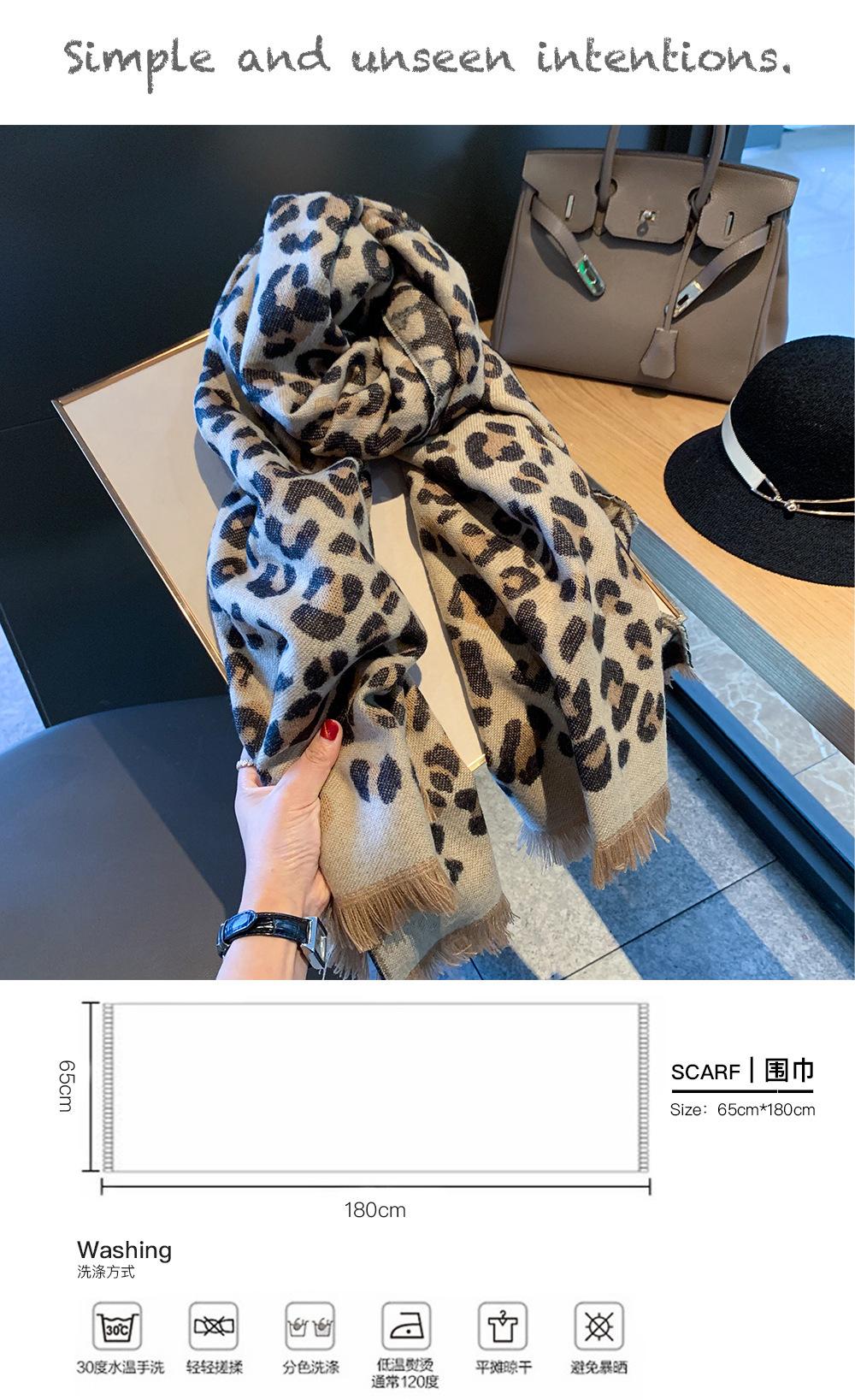 Bufanda de Cachemira Imitación para Mujer Estilo Coreano Otoño e Invierno Patrón Estampado de Leopardo Engrosada Cálida Larga con Borlas Chal Bufanda de Doble Uso