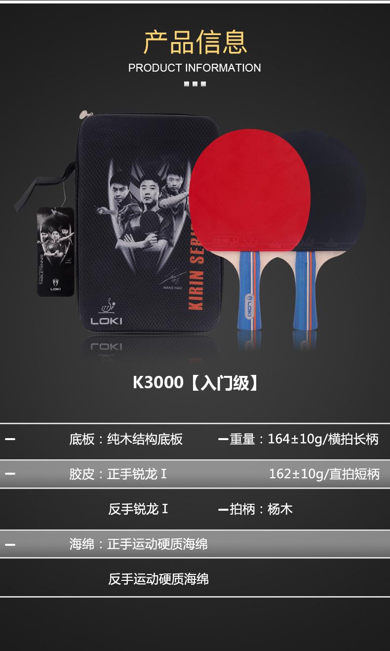 Juego de raquetas de tenis de mesa Loki Thor, raqueta terminada, 2 raquetas rectas, raqueta horizontal, par de raquetas de entrenamiento para niños y estudiantes K3000