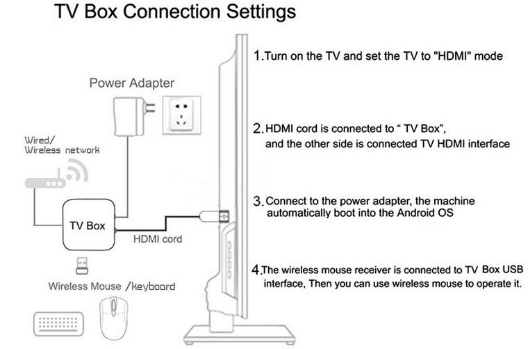 Tv box, infrared remote control, power supply, hdmi cable, manual
