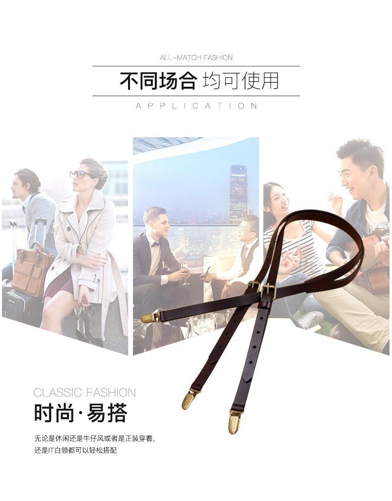 Fabricantes transfronterizos en Europa y Estados Unidos Tirantes de cuero vacuno de doble capa con 3 clips para hombre, ajustables, para pantalones de vestir de negocios