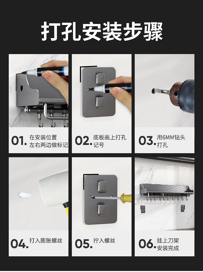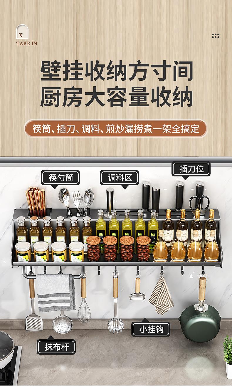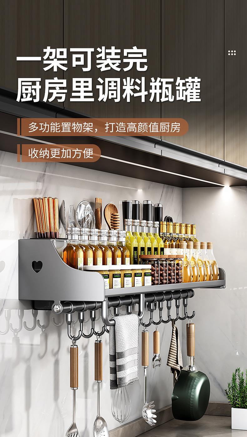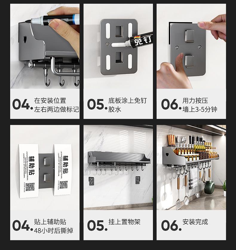 Estante de almacenamiento de cocina sin perforaciones, montado en la pared, para condimentos, palillos, cuchillos, estante de pared para el hogar