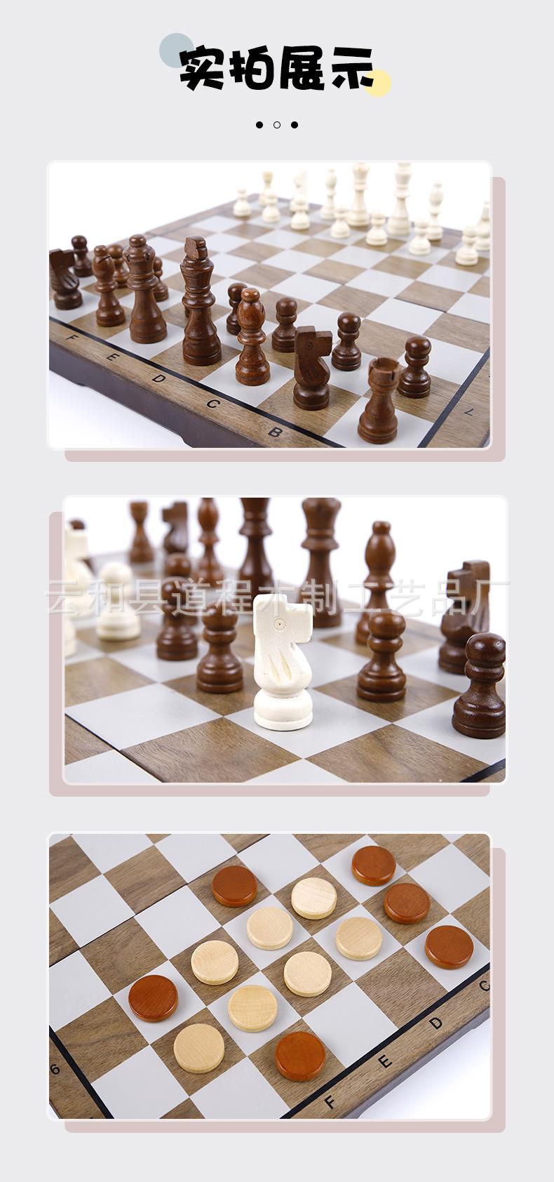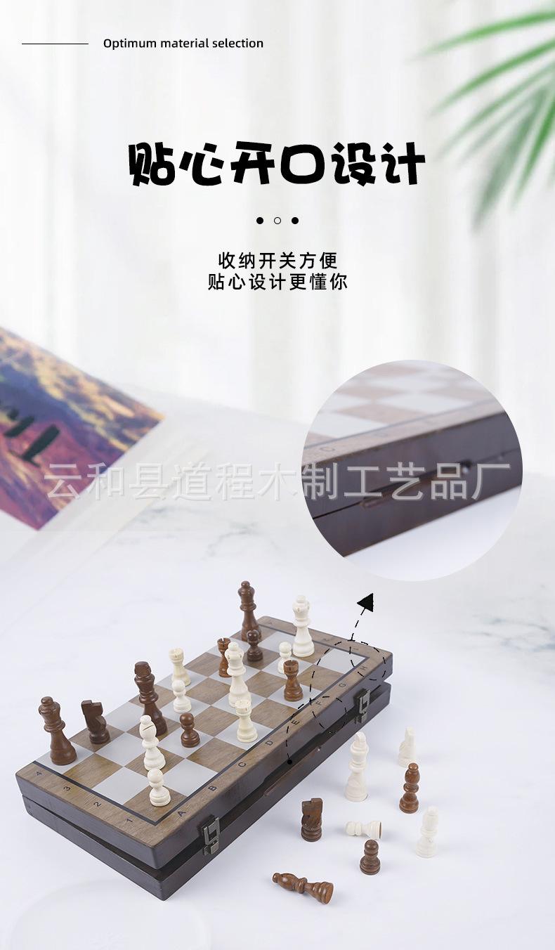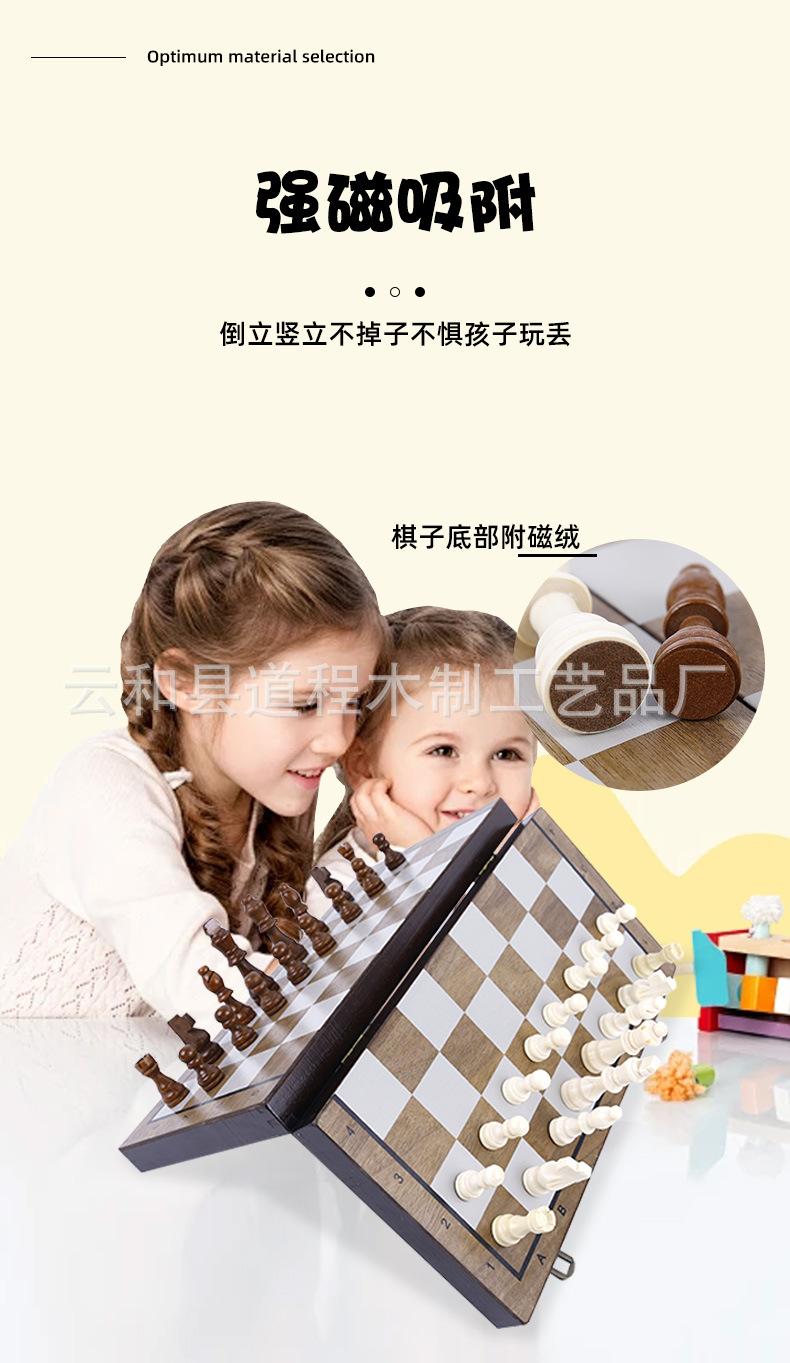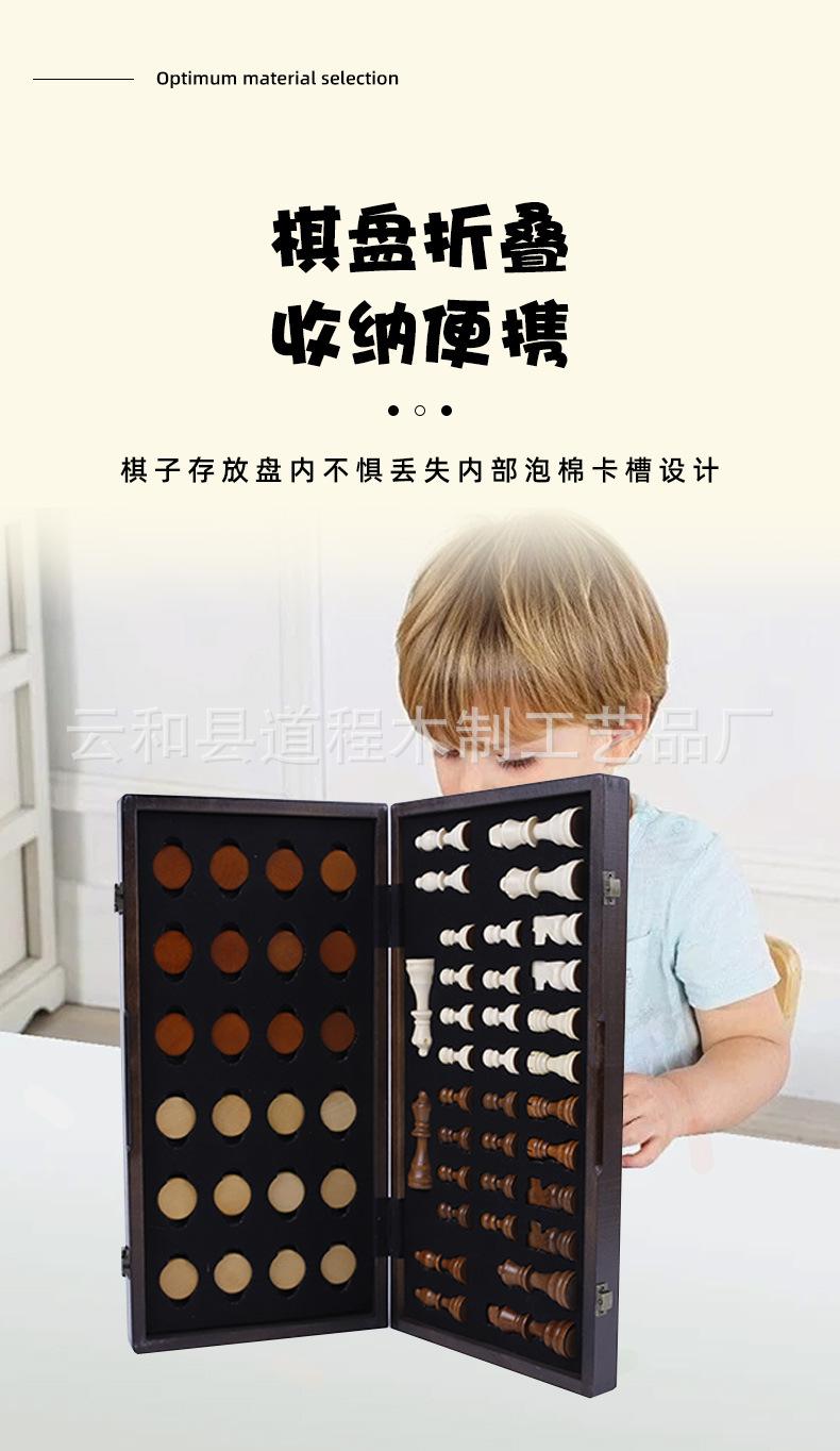 Ajedrez de madera plegable para niños, juego de mesa portátil, juguete educativo, ajedrez