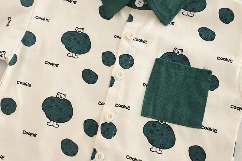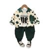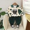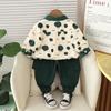 Green 25c19-polka dot bear long-sleeved three-piece set, Brown 25c19-polka dot bear long-sleeved three-piece set