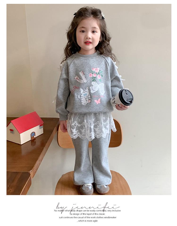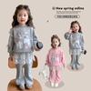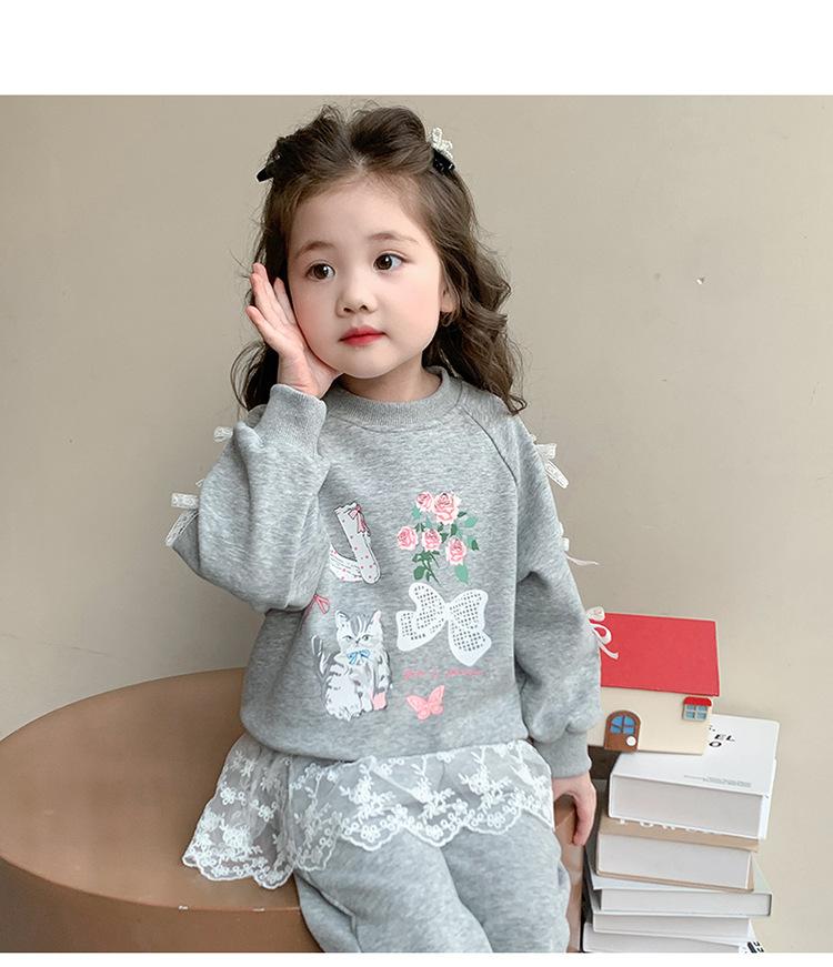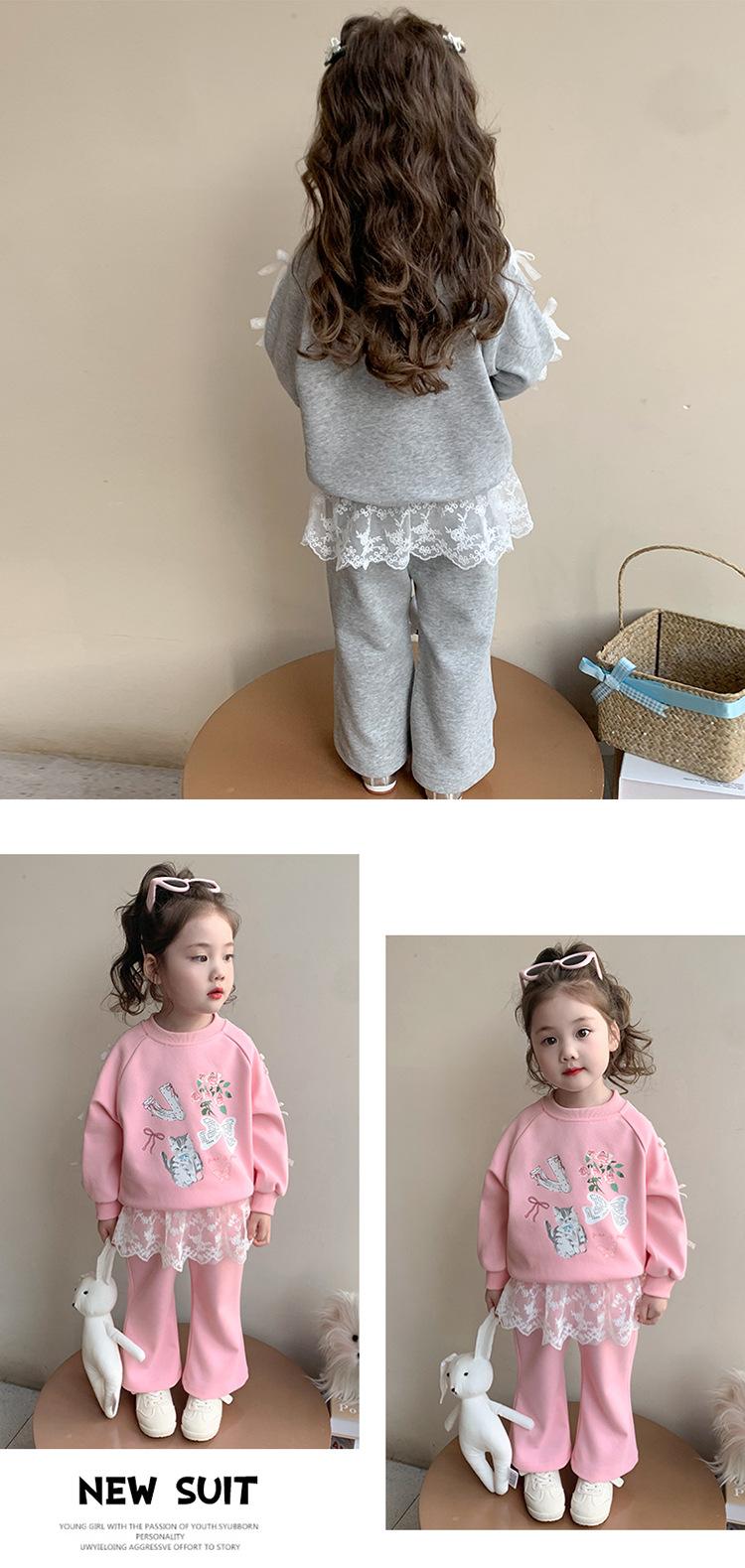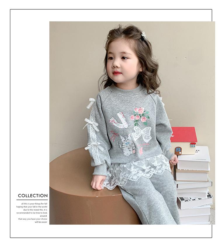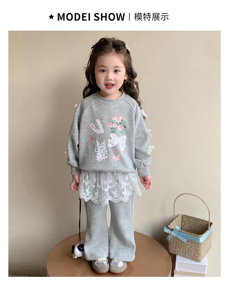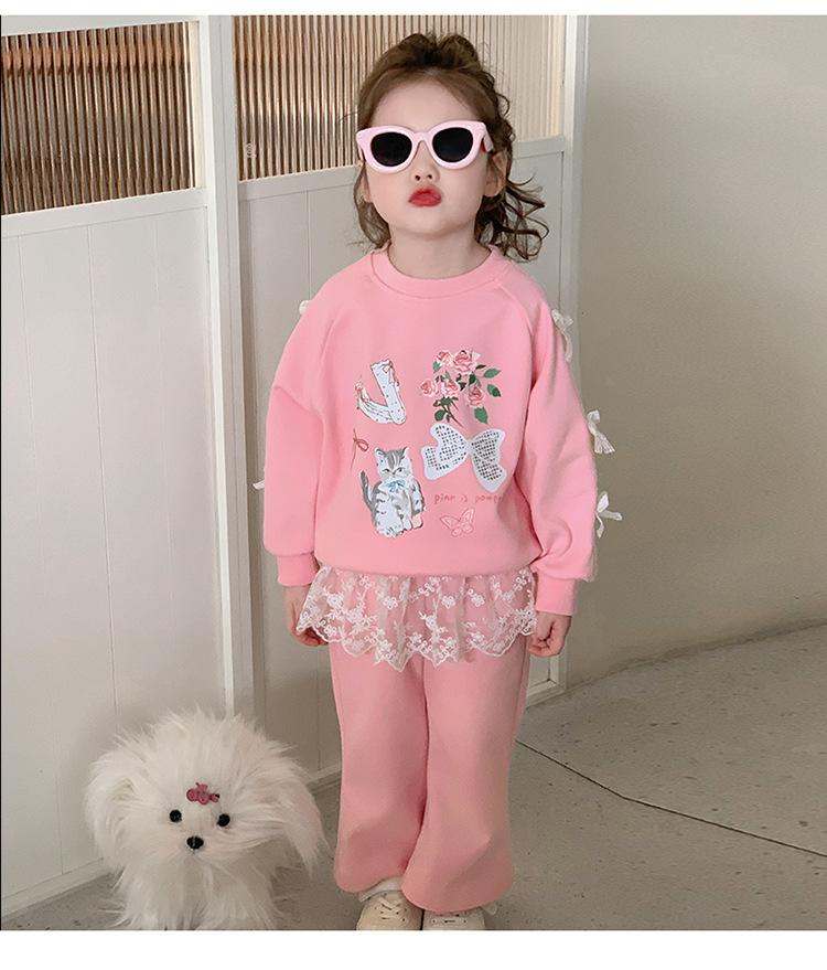 Traje de encaje con lazo para niñas, primavera y otoño de 2025, nueva moda, ropa deportiva informal de dos piezas para niñas pequeñas.