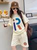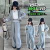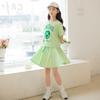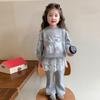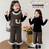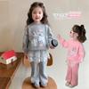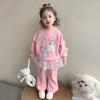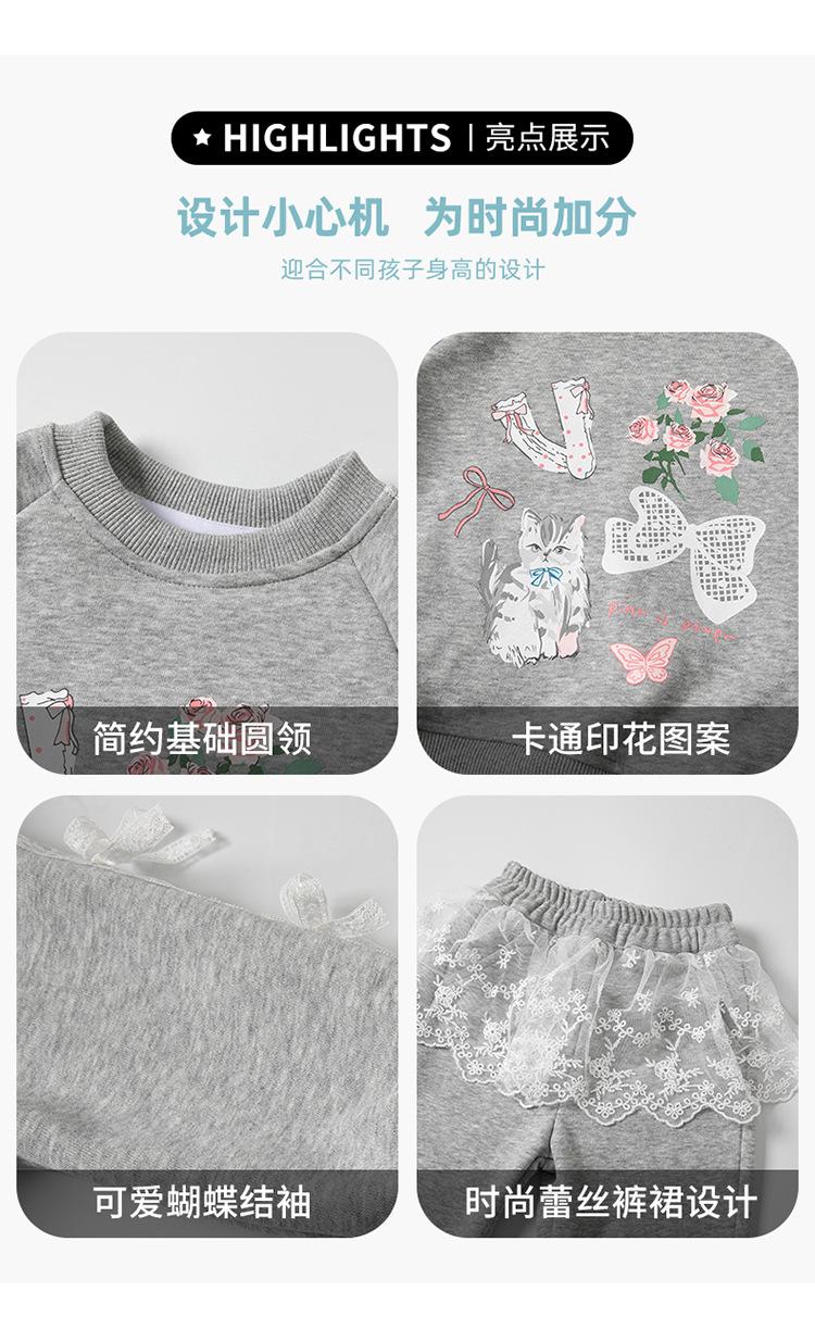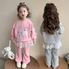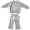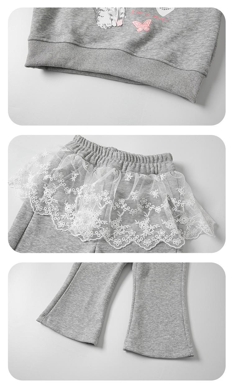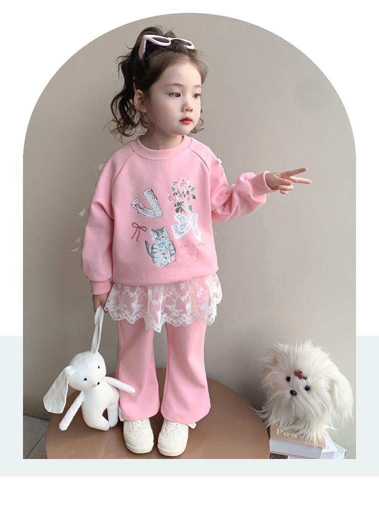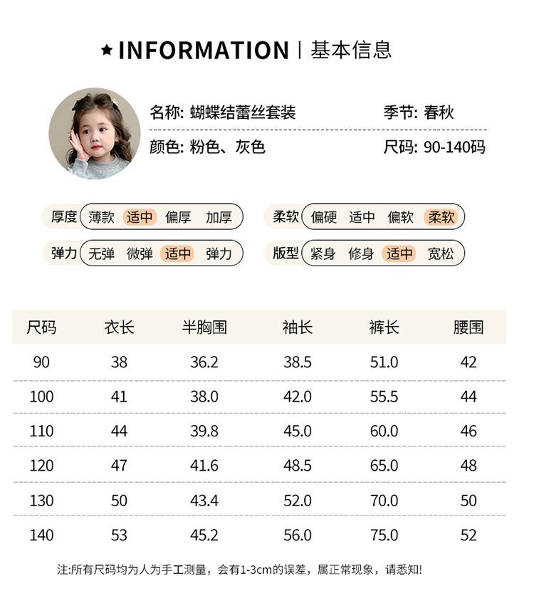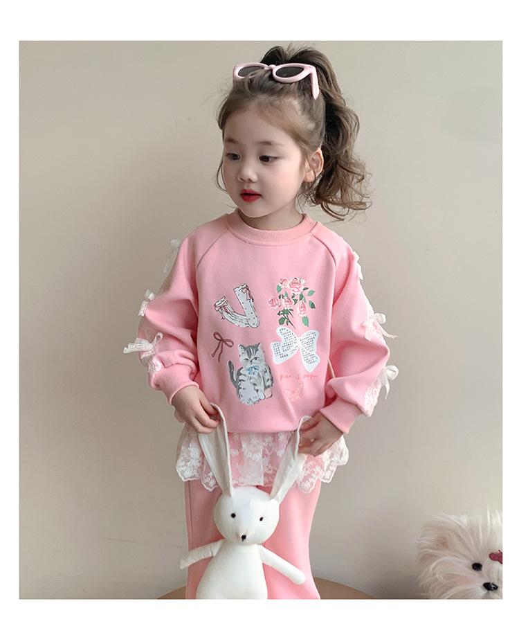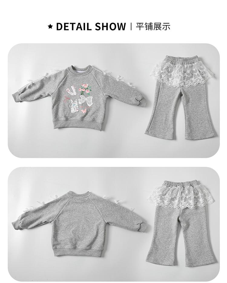 Traje de encaje con lazo para niñas, primavera y otoño de 2025, nueva moda, ropa deportiva informal de dos piezas para niñas pequeñas.