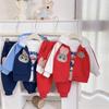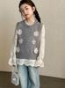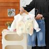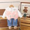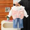 Traje de primavera y otoño para niñas 2025, nueva ropa de primavera para niños, suéter estilo occidental, chaleco, ropa de bebé de tres piezas, moda
