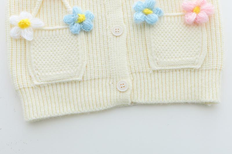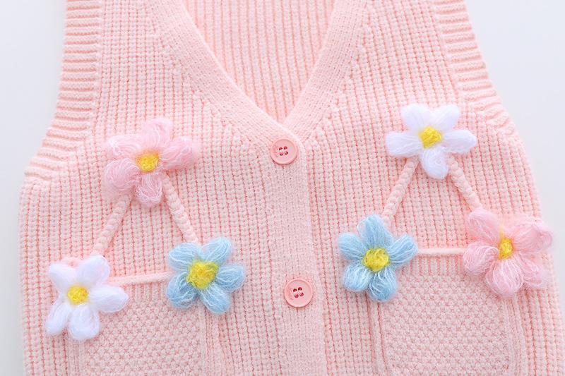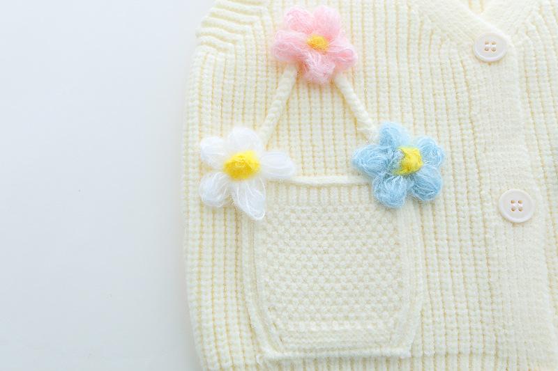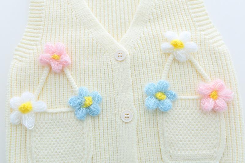 Pink 5109 sweater flower long-sleeved three-piece set, Yellow 5109 sweater flower long-sleeved three-piece set