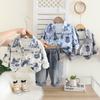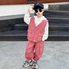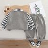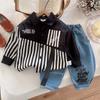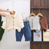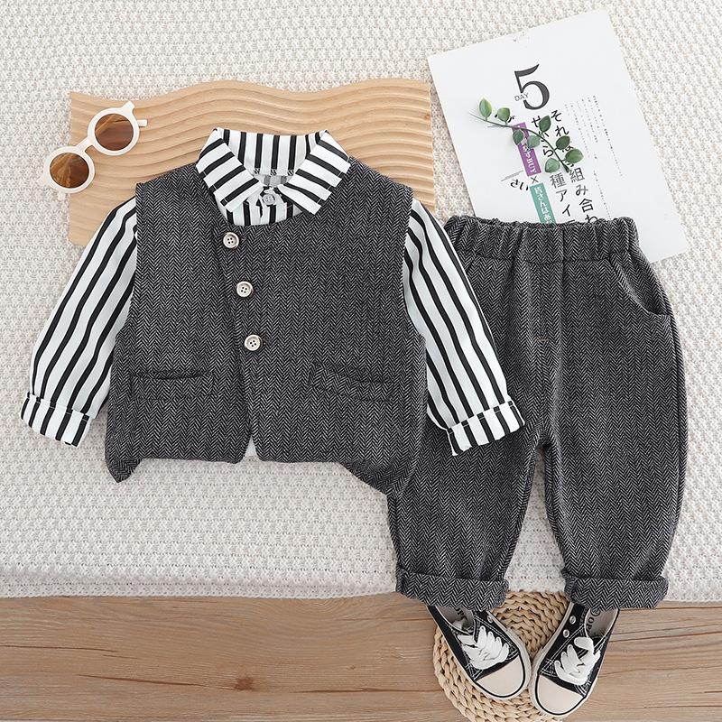 Primavera 2025 Nuevo Traje para Niños Estilo Coreano Chaleco Camisa Rayada Manga Larga Primavera Nuevo Set de Tres Piezas a la Moda
