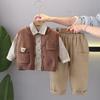 Traje para niño Primavera y Otoño Nuevo Suéter de Otoño para Niños Chaleco Conjunto de Tres Piezas Bebé Fresco y Guapo Ropa Infantil Moderna