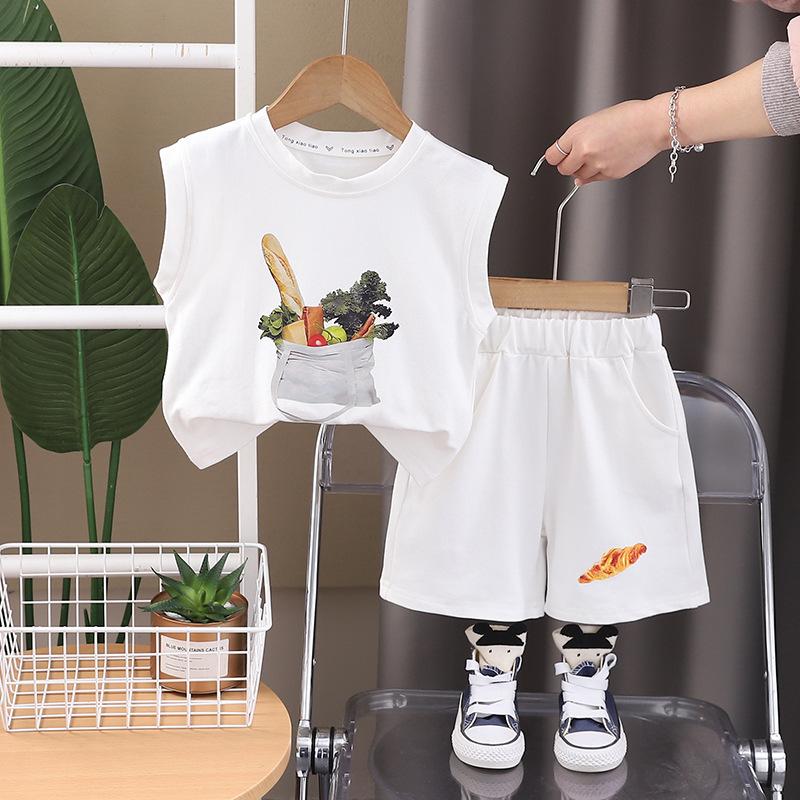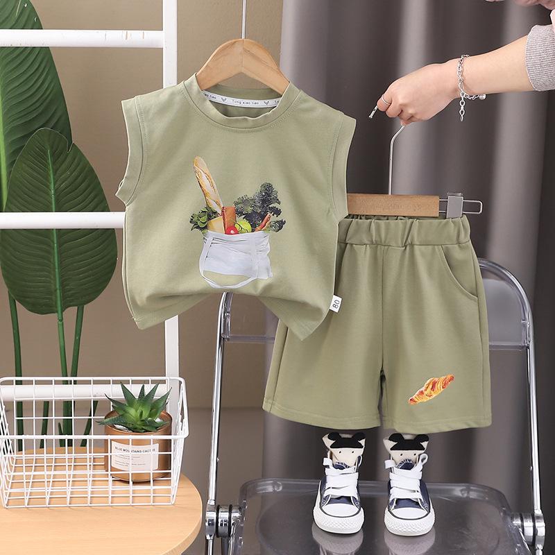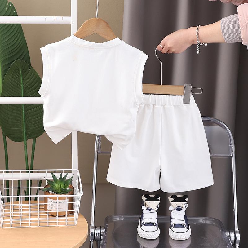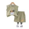 Traje de Verano de Moda para Niños 2025 Estilo Coreano Chaleco Nuevo Sin Mangas Conjunto de Dos Piezas Estampado para Bebé