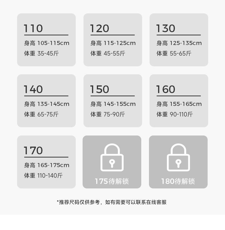 110cm, 120cm, 130cm, 140cm, 150cm, 160cm, 170cm