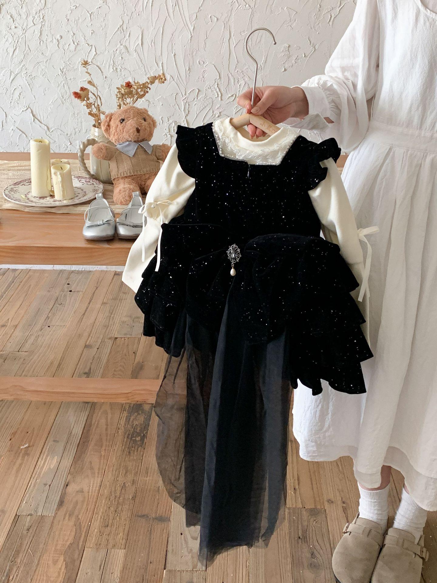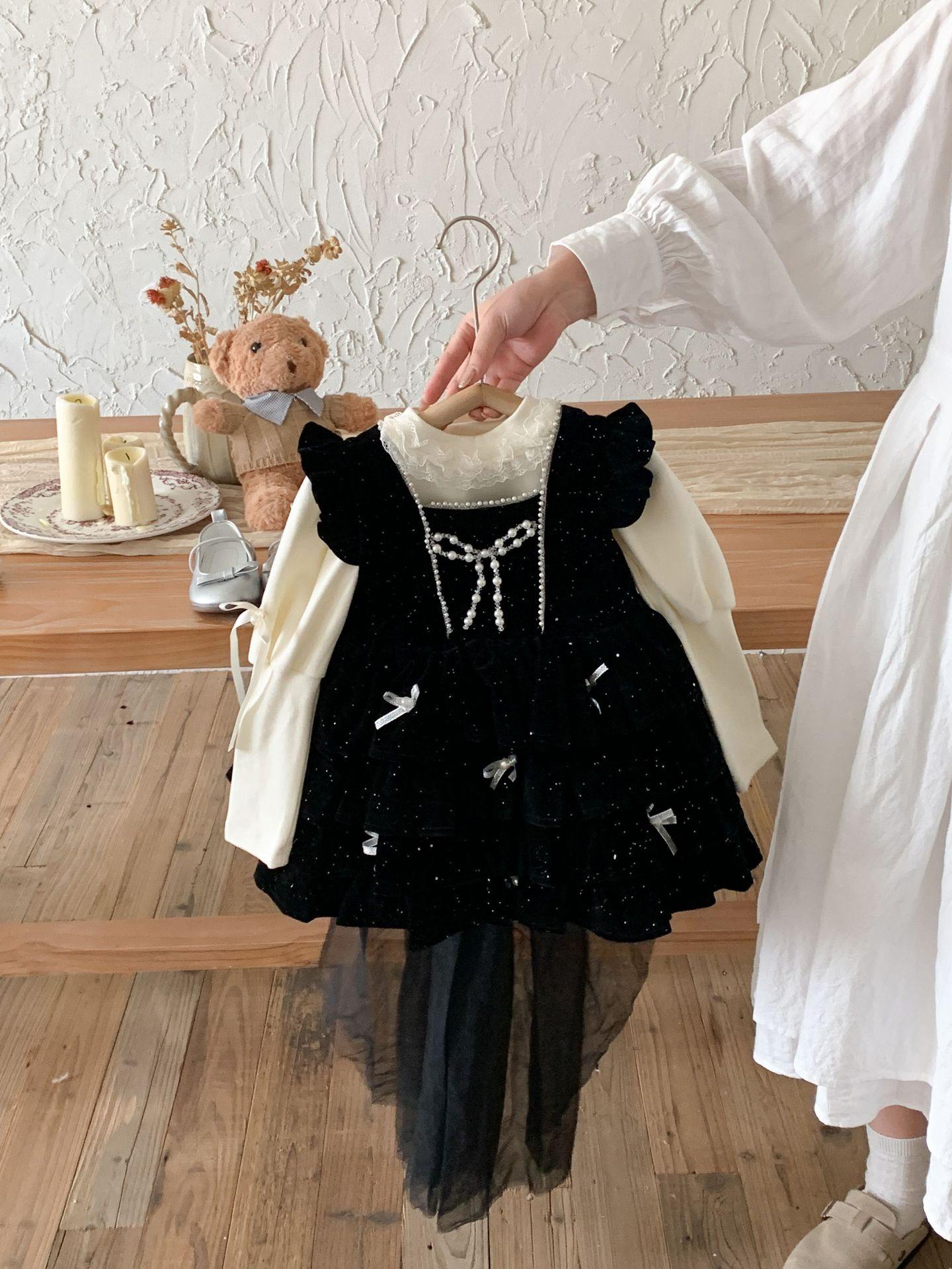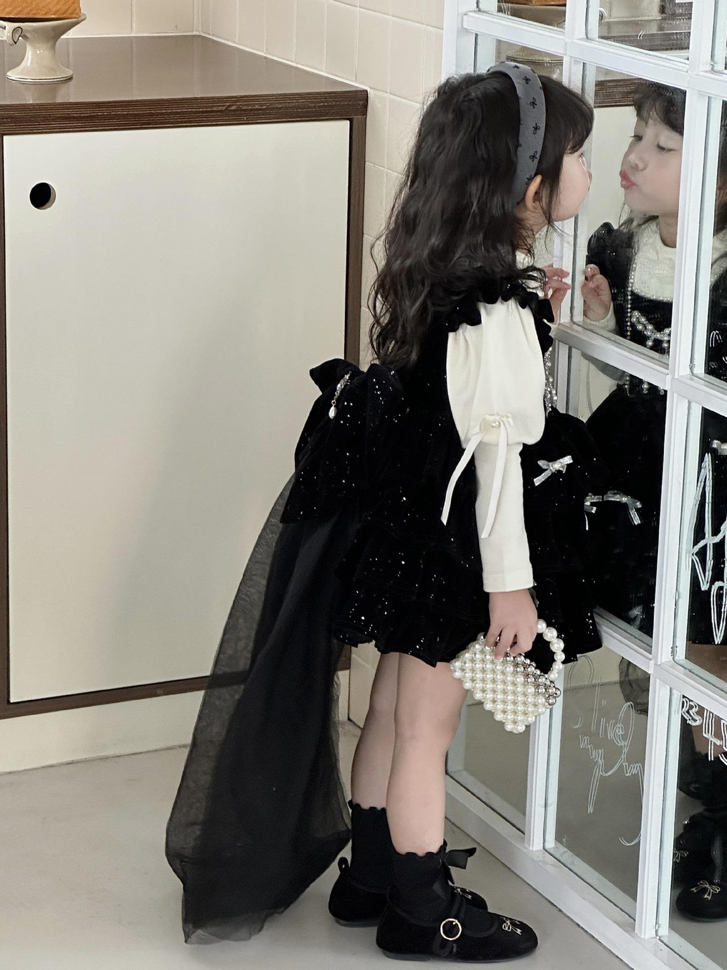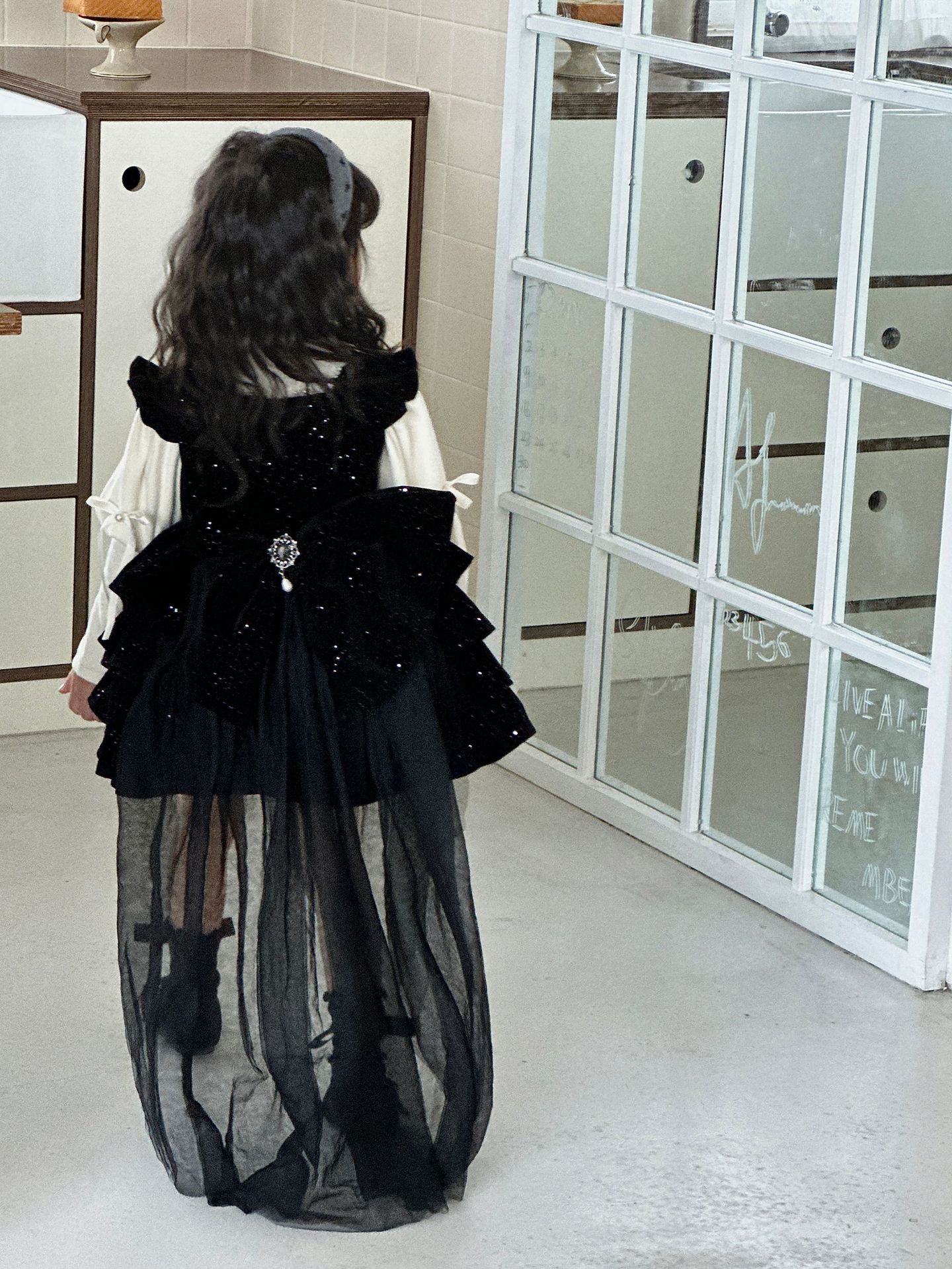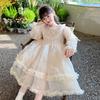 Vestido de Niña 24 Otoño/Invierno Nuevo Vestido de Princesa con Lazo y Cola Lolita Vestido Formal Infantil para Niñas Jóvenes y Pequeñas