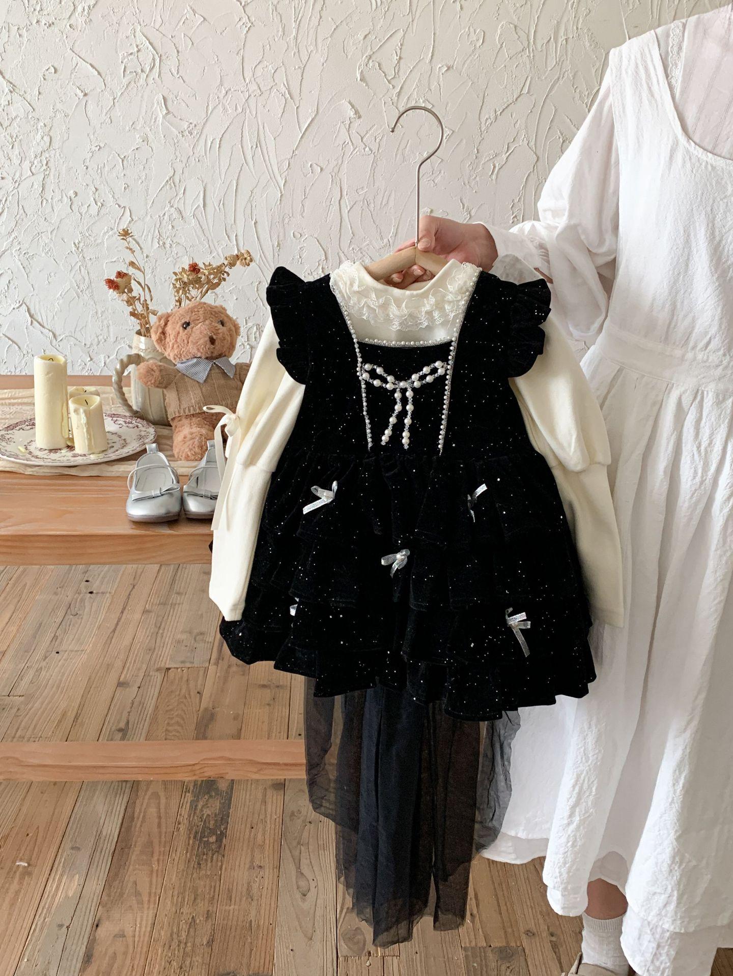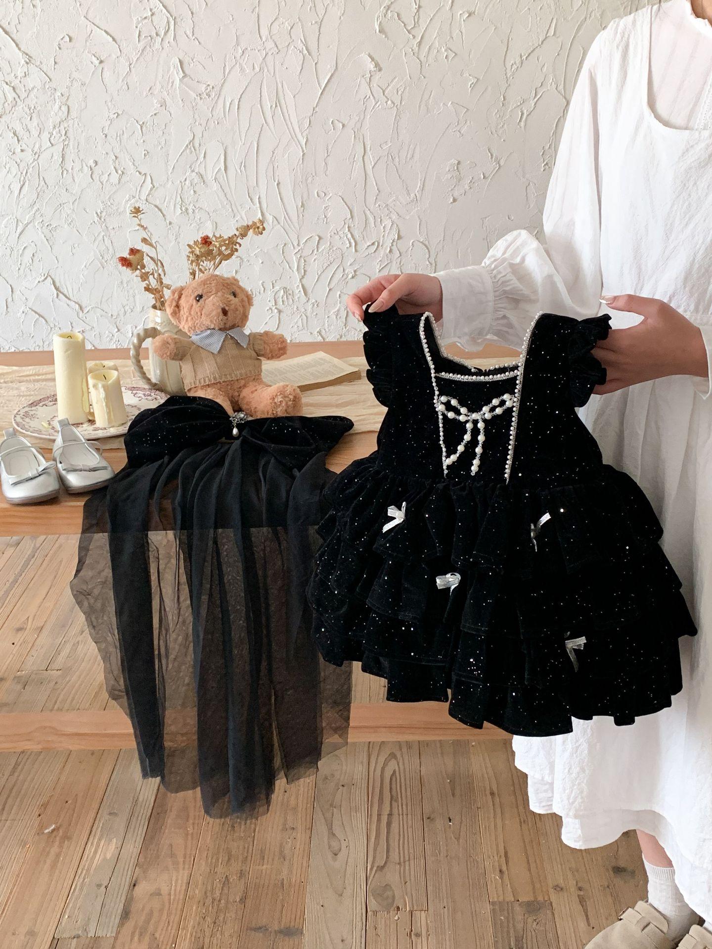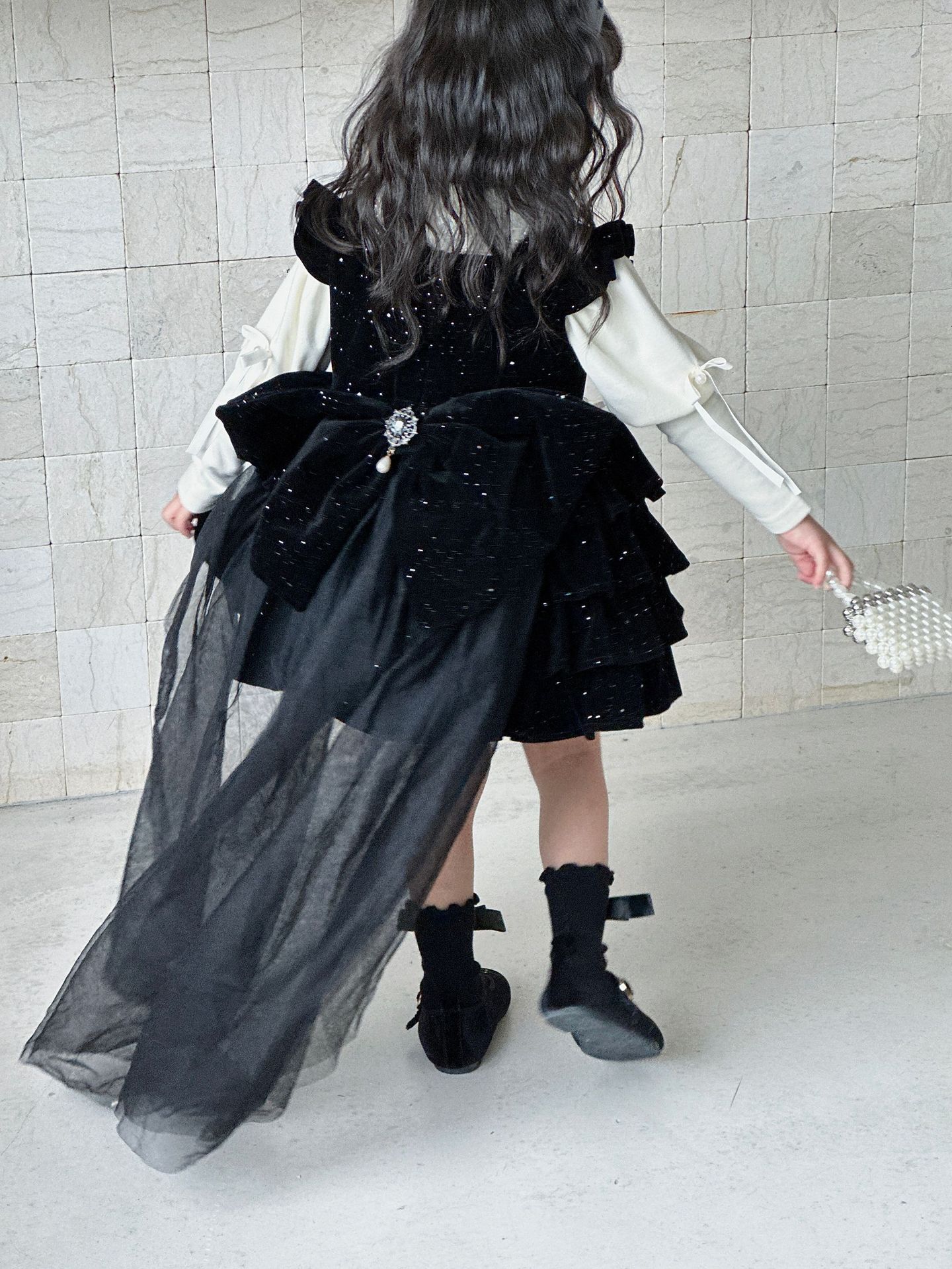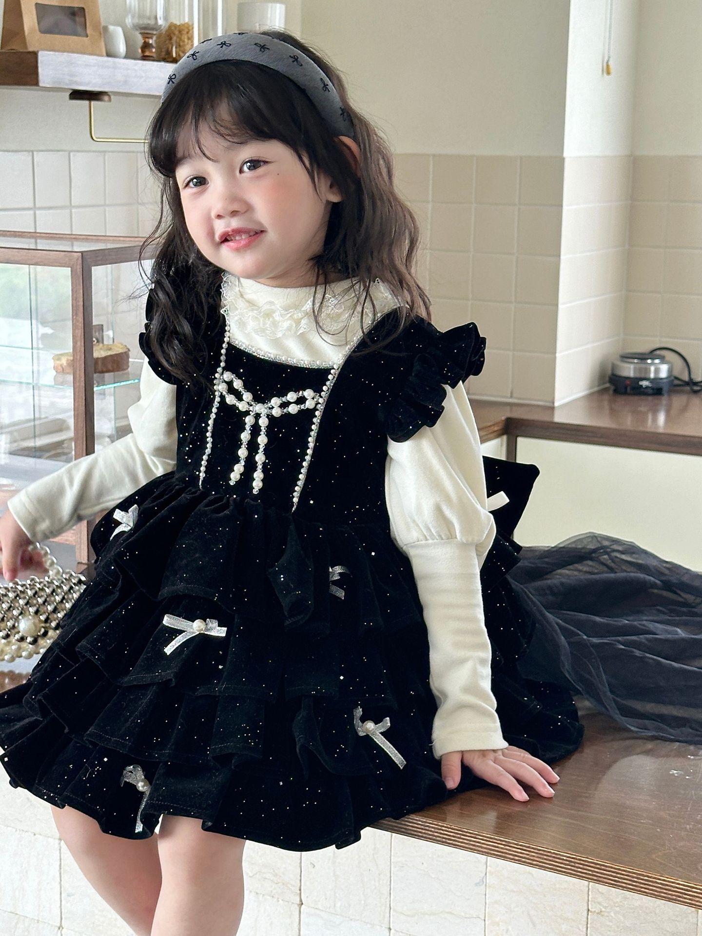 Vestido de Niña 24 Otoño/Invierno Nuevo Vestido de Princesa con Lazo y Cola Lolita Vestido Formal Infantil para Niñas Jóvenes y Pequeñas
